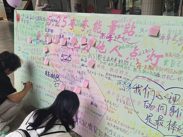 活动现场,“夸夸能量墙”备受青睐,同学们纷纷驻足,用彩笔写下对自己的鼓励或对他人的赞美。“你比想象中更勇敢”“爱自己是终身浪漫的开始”……一句句真挚话语,为校园打造了一道温暖动人的风景线。
