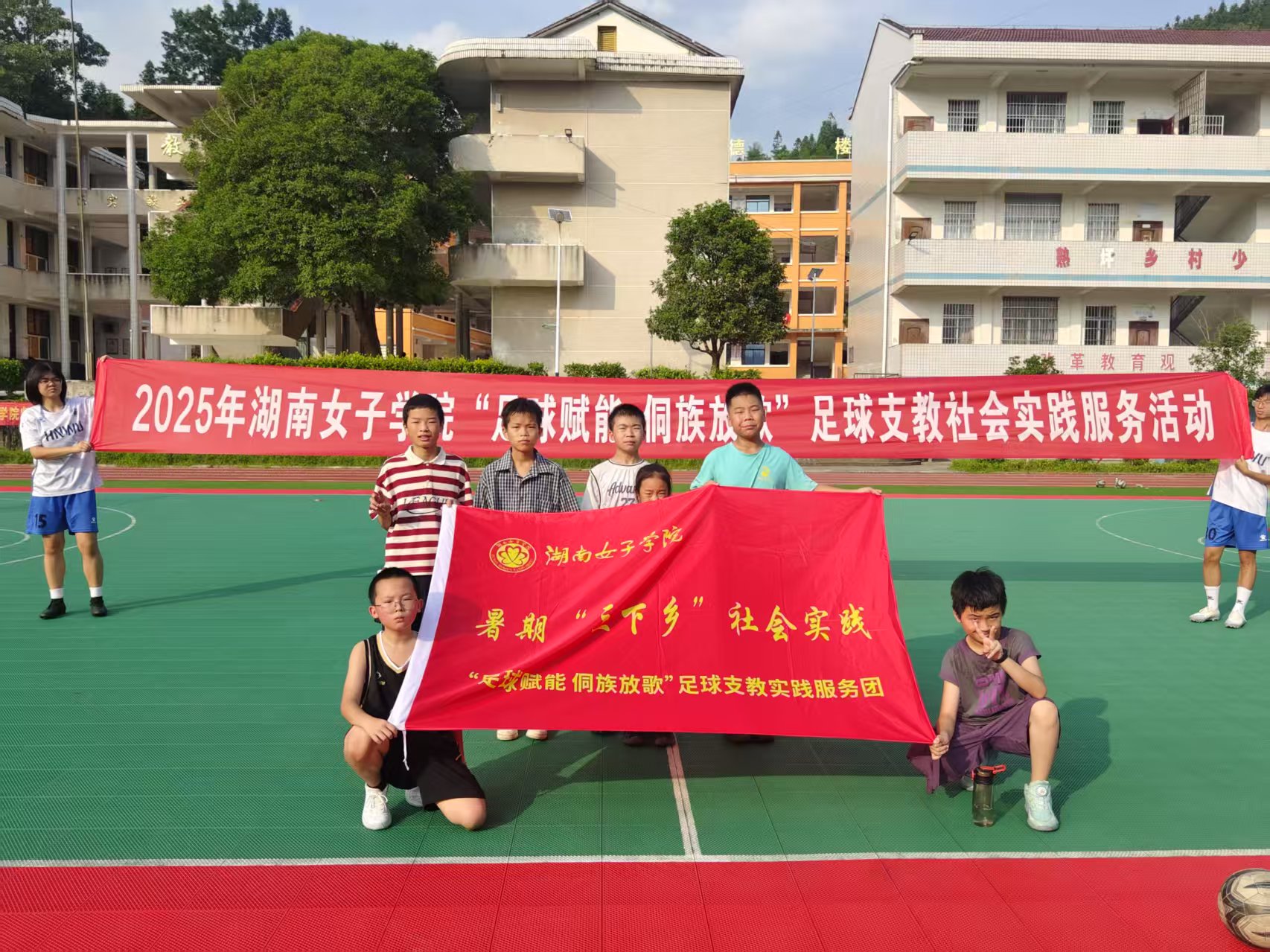 本网讯(体育部 刘泽锋 肖晖妮 张宁楠)7月7日,best365中国官方网站 “足球赋能 侗族放歌” 足球支教社会实践团队奔赴洪江市熟坪乡中心学校,开启了一段意义非凡的支教之旅。此次活动为期8天,旨在通过足球教育与文化交流,为乡村孩子们带来知识、快乐与希望,助力乡村教育事业的发展。