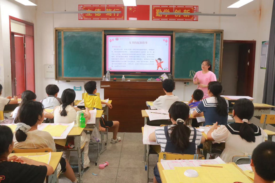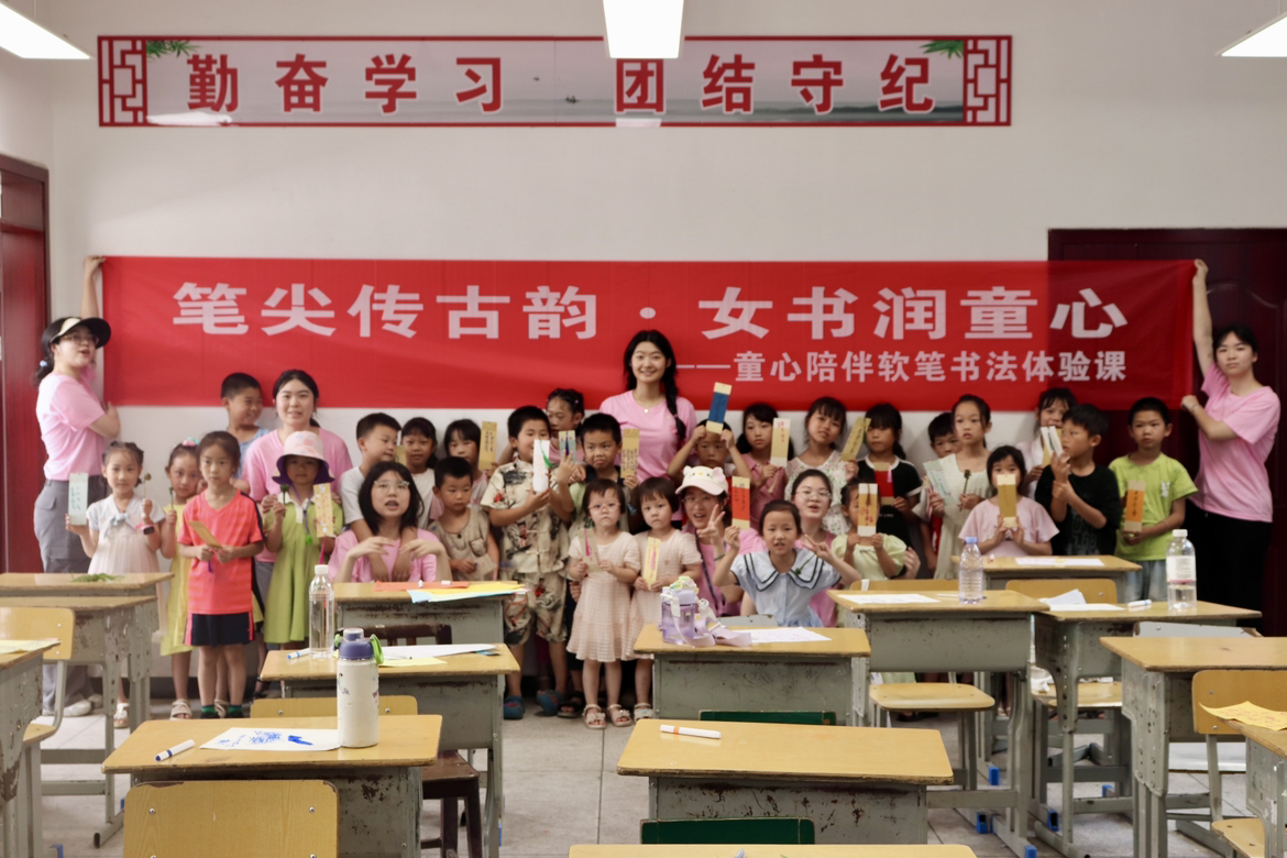 本网讯(校团委 陈湘 谢亚妤 陈韵谐 高璟安)“原来这些弯弯的字是古代女性创造的秘密文字!”7月10日,在洪江市熟坪乡熟坪社区的女书启蒙课堂上,10岁的李雨欣高举自己临摹的女书作品惊叹道。当日,best365官网母亲赋能实践团走进熟坪社区,为50余名当地儿童打造了一场融合非遗女书与红色文化的沉浸式体验课,以best365官网女性教育特色点亮乡村儿童的暑期生活。
