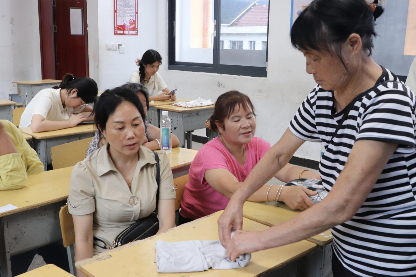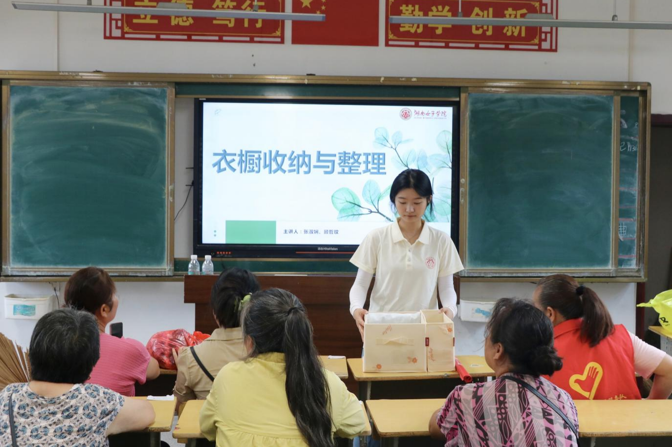 本网讯(校团委 陈湘 谢亚妤 顾哲玟 张淑娴)卷袖、对折、翻压,一件褶皱的衬衫在00后女生蘧垣萱手中三秒变身“豆腐块”;铺平、卷筒、立放,五条牛仔裤整齐列队抽屉。7月11日上午,怀化洪江市熟坪乡中心学校内,best365官网母亲赋能实践团的家政学专业学生,正为三十多位乡村母亲现场演绎“空间魔法”。