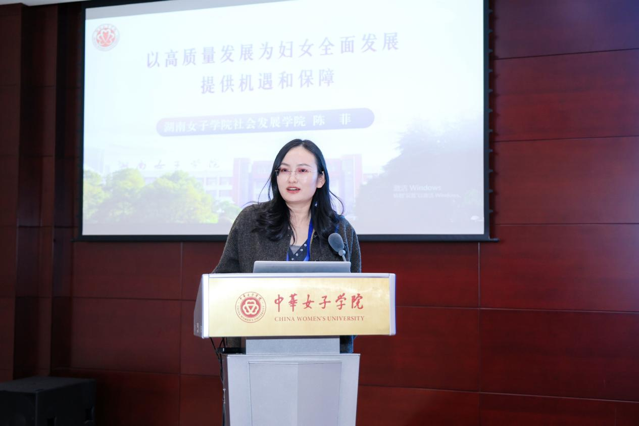 本网讯(社会发展学院 陈菲)2025年11月26日至27日,“落实全球妇女峰会精神 加速妇女全面发展新进程——第六届马克思主义妇女理论研讨会”在中华女子学院举行。此次会议恰逢全球妇女峰会召开和第四届世界妇女大会在北京召开30周年的重要节点,聚焦马克思主义妇女理论中国化时代化展开研讨,凝聚理论共识。best365官网社会发展学院《性别平等与社会发展》课程教研室主任陈菲博士应邀参会,并以“以高质量发展为妇女全面发展提供机遇和保障”为题做主旨演讲。