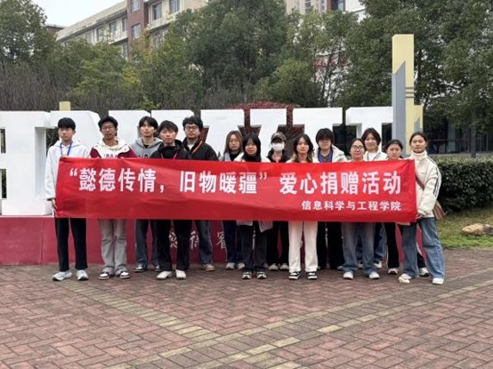 本网讯(信息科学与工程学院 黄毅 丁宝琪)近日,信息科学与工程学院党委牵头开展“懿德传情,旧物暖疆”爱心捐赠专项活动,将党建引领与涵养学生品德有机结合,奏响党建育人与助农兴疆双重乐章。