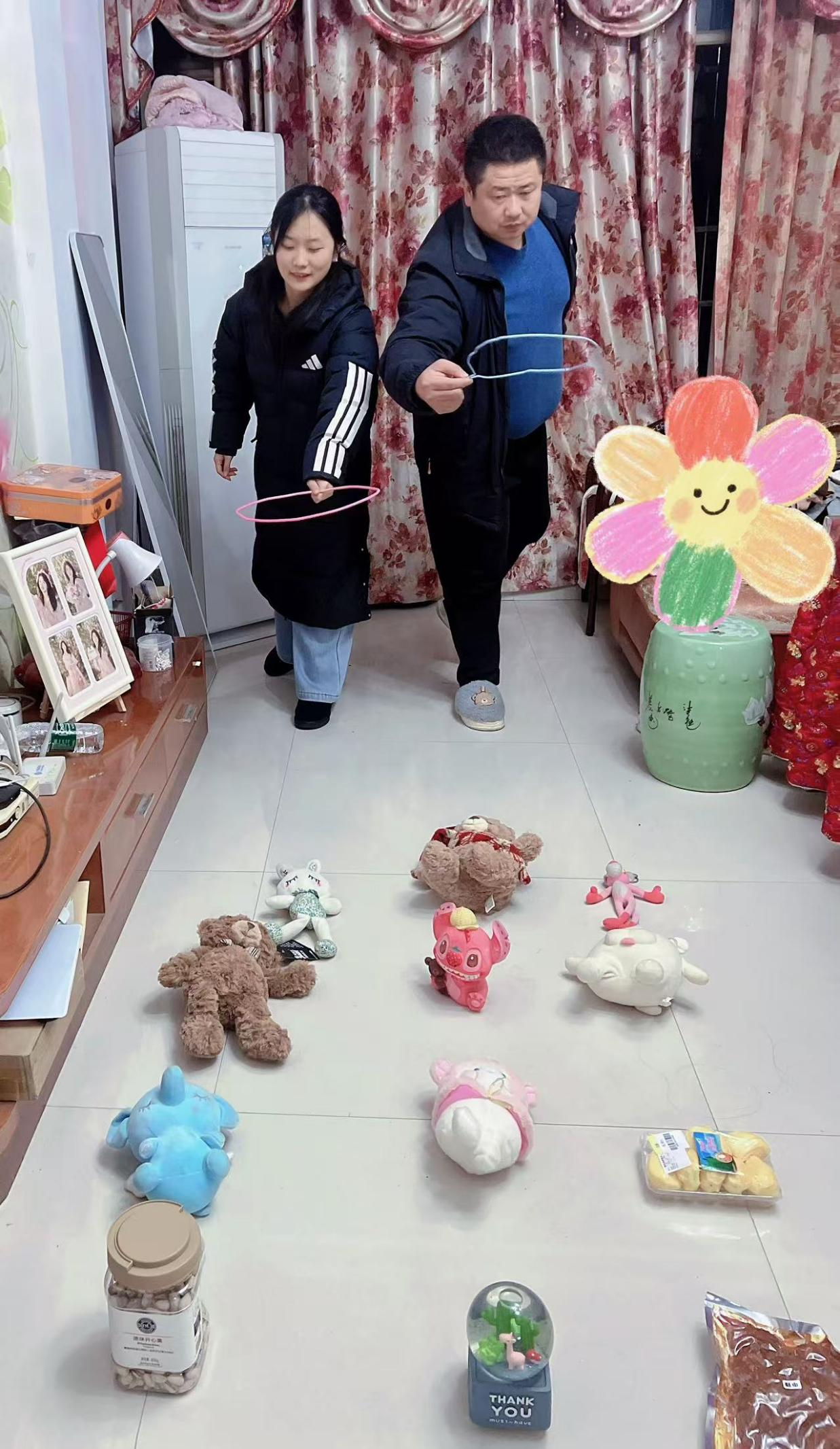 为促进家庭成员间的深度互动,学子们还复原传统节庆游艺。24级老年学班王金鳌在家组织投壶、套圈等趣味活动。小小箭矢投中壶口,彩圈精准套住目标,笑声此起彼伏。这些源自古礼的游戏,不仅活跃了节日气氛,更在轻松互动中拉近了代际距离,让团圆有了更多参与感与仪式感。