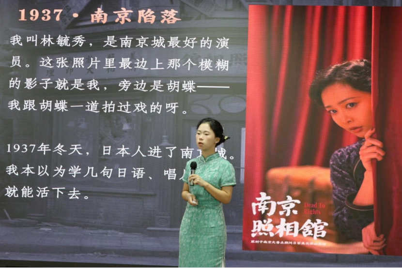 分享现场,甄静同学率先登场,演绎《南京照相馆》中林毓秀的巾帼担当,带领现场师生回望民族至暗时刻的觉醒与抉择;杨丹同学紧随其后,讲述剧中志士群像的家国坚守,展现普通人在乱世中的使命与担当;黄楚郁同学诠释《无名》英雄的隐秘奉献,让大家看见革命先辈隐姓埋名的信仰力量;申展硕同学则讲述时代楷模申纪兰的实干人生,将红色精神的传承与和平年代的坚守紧密联结。