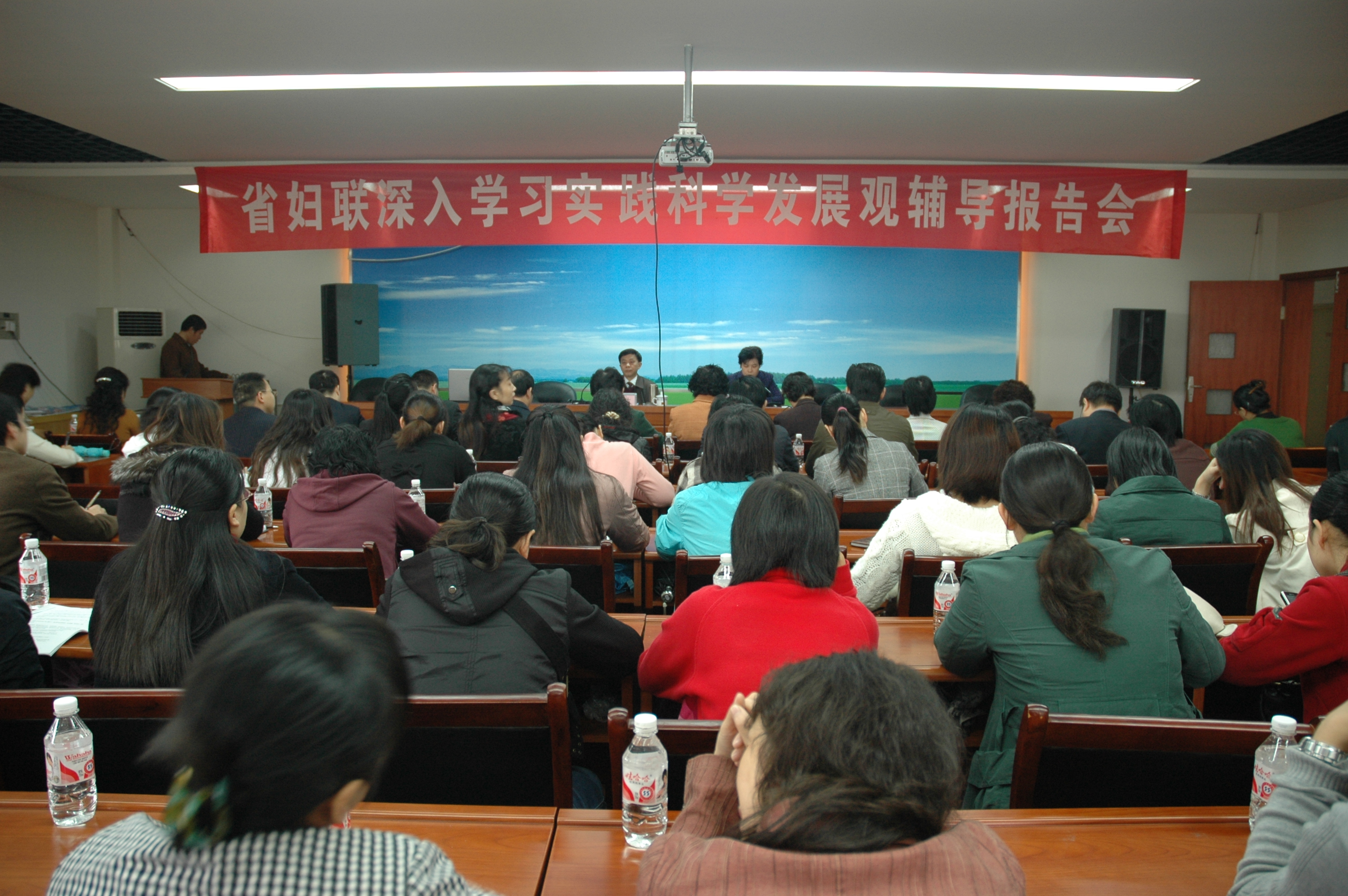 本报讯 (龚雅琴) 11月7日上午,省妇联深入学习实践科学发展观辅导报告会在best365官网举行。省委讲师团李官生教授作题为《坚持走科学发展之路》的辅导报告。省妇联主席冯湘保主持报告会。best365官网各党总支、各机关支部党员代表90多人聆听了报告会。