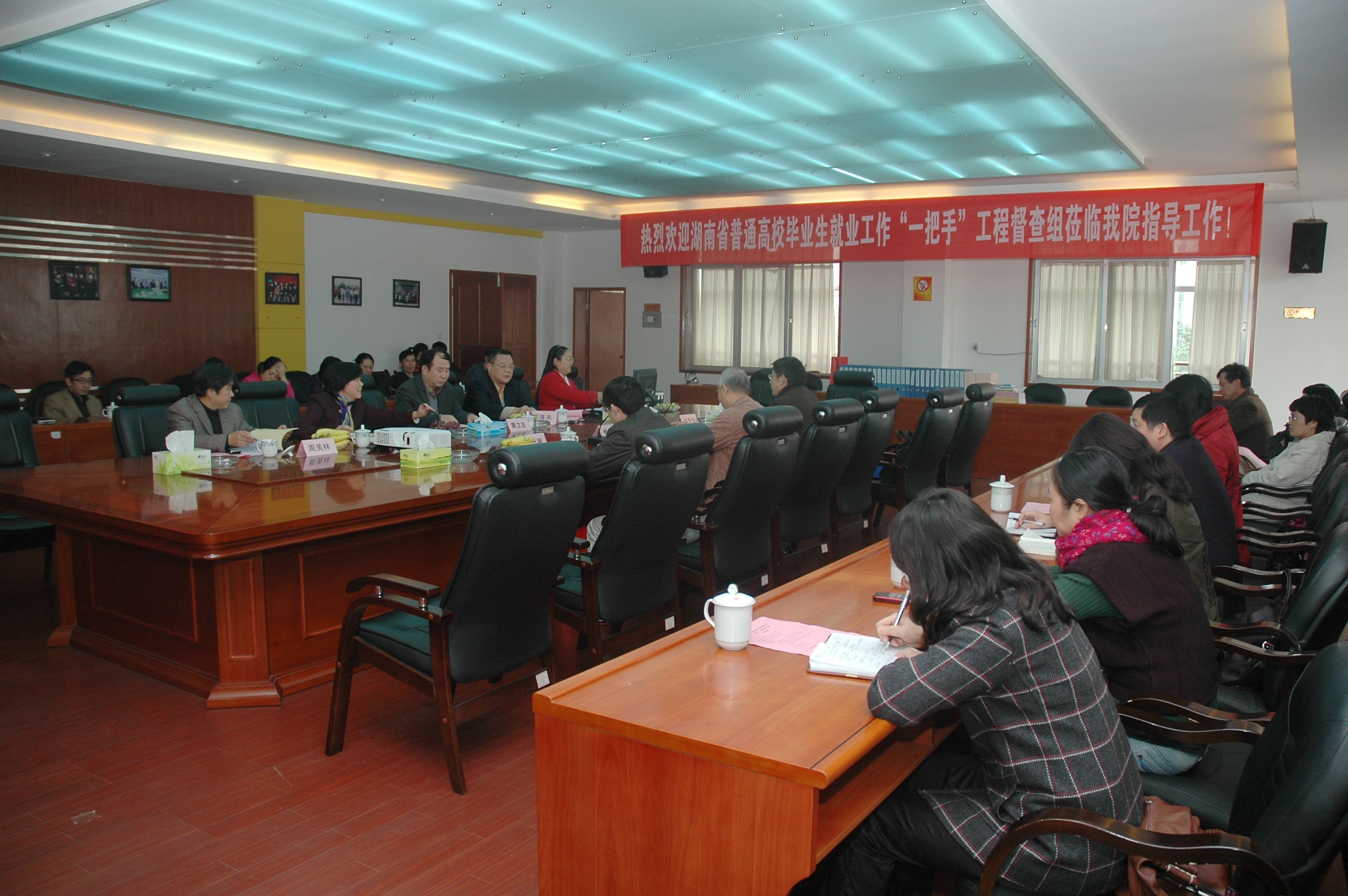 10月29日下午,省教育厅毕业生就业工作“一把手”工程督察组省教育厅副巡视员赖阳春一行来我院督察与指导。我院院长罗婷,院党委副书记吴洛夫,副院长黄立宏、贺江平、周美林出席汇报会。各系部主任、书记和相关职能部门负责人参加了汇报会。