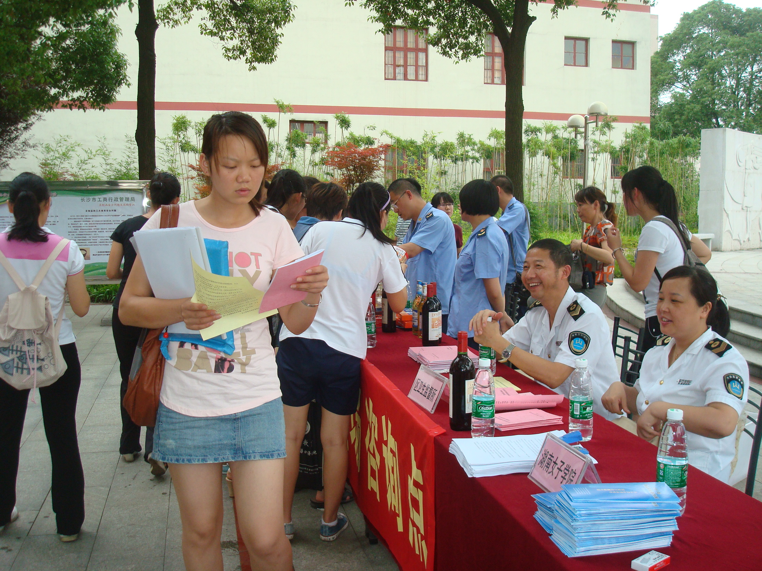 6月13日至19日,best365官网正式启动了主题为“人人关心食品安全、家家享受健康生活”的食品安全宣传周活动。本此活动的开展正值《中华人民共和国食品安全法》颁布实施两周年之际,旨在进一步贯彻实施《食品安全法》,强化师生的食品安全意识,保障食品安全。 6月13日上午,学校召开专题工作会,部署宣传周活动的相关工作。6月17日,学校在文化广场设立食品安全宣传咨询台,邀请天心区卫生监督所、天心区工商分局和青园区街道办事处的工作人员细心地为师生们讲述食品安全的相关知识,副校长周美林出席活动。通过讲解、与师生交流、发放食品安全手册等多种形式的宣传,师生们更多地了解了食品安全知识,掌握了多种鉴别食品真假的方法。