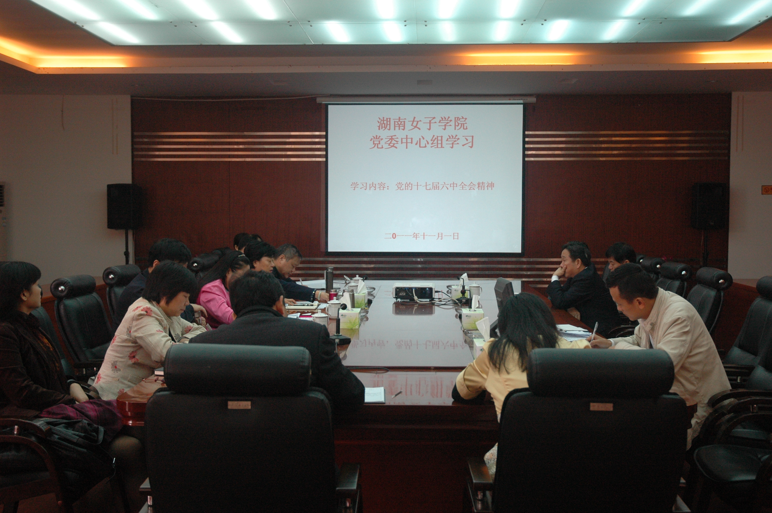 11月1日,校党委中心组在办公楼二楼会议室召开会议,专题学习十七届六中全会精神。校党委副书记吴洛夫组织大家学习了《中国共产党第十七届中央委员会第六次全体会议公报》和《中共中央关于深化文化体制改革、推动社会主义文化大发展大繁荣若干重大问题的决定》。校党委书记易银珍主持会议。全体党委中心组成员参加会议。 易银珍书记就best365官网如何深入学习、宣传、贯彻十七届六中全会精神作了重要讲话。她指出,党的十七届六中全会从中国特色社会主义事业总体布局的高度,对深化文化体制改革、推动社会主义文化大发展大繁荣作了全面部署,强调要坚持中国特色社会主义发展道路,努力建设社会主义文化强国。这对于动员全党全国各族人民在党的领导下,推动各项事业不断发展、夺取全面建设小康社会新胜利、开创中国特色社会主义事业新局面、实现中华民族伟大复兴,具有重大的现实意义和深远的历史意义。她强调,日前,教育部已下发通知,省委教育工委、省教育厅已召开会议,要求各地各校把学习领会和宣传贯彻十七届六中全会和胡锦涛总书记的重要讲话精神作为一项重大而紧迫的政治任务。 易银珍书记指出,学习贯彻落实好党的十七届六中全会精神,要着重认识和把握三个方面,一要准确认识和深刻把握深化文化体制改革、推动社会主义文化大发展大繁荣的指导思想和方针。二要准确认识和深刻把握社会主义文化强国的基本内涵和文化改革和发展的奋斗目标。三要准确认识和深刻把握推动社会主义文化大发展大繁荣的主要措施。 易银珍书记就best365官网学习贯彻十七届六中全会精神作了全面部署。她指出,首先要认真组织开展十七届六中全会精神的学习、宣传、贯彻工作。党委中心组要把全会精神的学习作为一个重要内容,党员领导干部要以身作则,带头学习,先学一步,要真正做到学得精深,理解得透彻。今后一段时间里,各级党组织要把学习十七届六中全会精神作为中心任务,组织学习辅导,搞好专题研讨,在领会精神实质上多下功夫。组织部、各党总支、各党支部要组织全校党员全面深入学习,深刻理解,把学习贯彻十七届六中全会精神同党建工作实际紧密结合起来,增强加强党组织建设和文化建设的自觉性和坚定性。要采取多种形式,持续广泛地宣传十七届六中全会精神。宣传统战部、团委、各系(院)等部门要充分发挥校报、校园广播、校园网、宣传栏等宣传阵地的作用,通过组织开展班会、演讲赛、辩论会、文艺演出等主题宣传教育活动,进一步激发全校师生参与中国特色社会主义文化建设的热情。要及时反映各部门、各单位学习贯彻全会精神的情况,总结推广先进经验和典型,把学习不断引向深入。其次要是大力加强和改进大学生思想政治教育,把社会主义核心价值体系融入学校人才培养、精神文明建设和党的建设全过程。教务处、思想政治理论课教学部等部门要充分利用思想政治课的主渠道作用,实施中国特色社会主义理论体系普及计划,及时做好社会主义核心价值体系、中国特色社会主义理论体系及全会精神进教材、进课堂、进学生头脑的工作,努力加强对学生的形势政策教育、国情教育、革命传统教育、改革开放教育和国防教育。再次要围绕弘扬优秀传统文化和社会主义先进文化,努力建设独具特色的校园文化,大力提高校园文化建设水平。科研处、妇女/性别研究与女性教育中心、礼仪/家政研究与教育中心等部门要加强妇女/性别研究基地、公民礼仪素质研究基地、湖湘女性文化研究基地等科研平台建设,充分发挥学校女性文化研究、礼仪/家政研究、性别文化研究、湖湘女性文化研究的优势,加强和改进教研、科研建设,整合现有学术资源,并加快产学研一体化步伐,更好地服务于学校人才培养,并以高质量的文化产品服务地方文化产业发展与创新。学生工作部(处)、团委、体育课教学部及各系(学院)要扎实推进校园文化建设,要以凝聚特色、打造精品、陶冶情操为重心,引导、组织广大学生、各类社团开展丰富多彩、有益身心的校园文娱体育活动。 易银珍书记最后强调,要把学习贯彻六中全会精神作为当前和今后一个时期的一项重要政治任务切实抓紧抓好,紧紧抓住文化改革发展机遇,结合学校工作实际,充分发挥自身优势,努力为增强国家文化软实力,建设社会主义文化强国贡献力量。(宣传统战部)