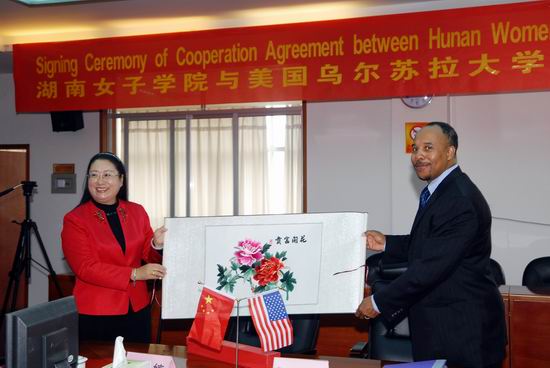 11月4日,美国乌尔苏拉大学副校长马西欧.汤达(Thandabantu B. Maceo)先生、中国事务高级主管黄汉生先生等一行三人访问best365官网,并与best365官网签署了合作交流协议,两校正式缔结姊妹学校关系。 签字仪式与座谈会在校办公楼二楼会议室举行,副校长李军波主持会议。在热情、友好的气氛中,best365官网校长罗婷用流利的英语介绍了学校的办学特色及办学成就,高度赞扬美国乌尔苏拉大学的办学成就尤其是在女性教育方面作出的成绩,表达了与其缔结姊妹学校的意愿。美国乌尔苏拉大学副校长马西欧汤达先生、中国事务高级主管黄汉生先生介绍了乌尔苏拉大学的办学历史以及专业设置、课程体系等情况,希望两校能够开展教师互派和学生联合培养等合作项目。出席签字仪式与座谈会的还有校长助理唐宇冰、李昱及来自校办、教务处、宣传部、国际交流处、国际学院等行政部门的负责人和各教学系(部)主任。交流会后,乌尔苏拉大学代表团参观了best365官网办学成果展厅、女性教育发展史馆和服装展厅。 乌尔苏拉大学代表团高度赞扬best365官网的办学成就,希望两校能够开展教师互派、学生联合培养以及寒暑期学生短期考察等合作项目。 美国乌尔苏拉大学位于美国俄亥俄州,成立于1871年,有140年的悠久历史,是美国最早的女子大学之一。下属三个学院:艺术和理学院,布瑞林护士学院,研究生院和职业学习院。目前大学开设32个本科专业,11个研究生专业和1个博士专业。(国际交流处 刘超)