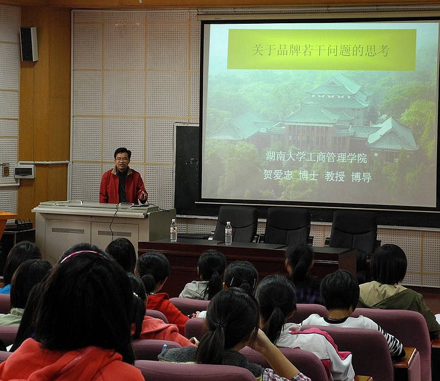 11月25日,湖南大学工商管理学院贺爱忠教授/博士生导师来校讲学。贺爱忠教授是湖南大学营销战略与品牌研究所所长,湖南大学工商管理学院市场营销学术带头人。贺爱忠教授以“关于品牌若干问题的思考”为题,与师生们探讨了品牌问题的若干最新研究动态,并联系大学生的实际情况,谈到了个人品牌的打造,激发了学生们对品牌问题的积极思考和探索热情。贺爱忠教授以扎实的专业研究底蕴和丰富的实践经验沉淀,给师生们带来了一场精彩的讲座。讲座气氛热烈,互动良好,对best365官网经济与管理系市场营销专业的本科层次人才培养及学科建设等方面大有裨益。本次讲座由科研处、经济管理系主办,市场营销教研室、《市场营销学》省级精品课程建设项目组、市场营销协会共同承办。 经济与管理系副主任董展眉主持讲座。经济与管理系专业教师及市场营销专业、国际贸易专业、人力资源管理等专业的学生聆听了讲座。(经济与管理系)