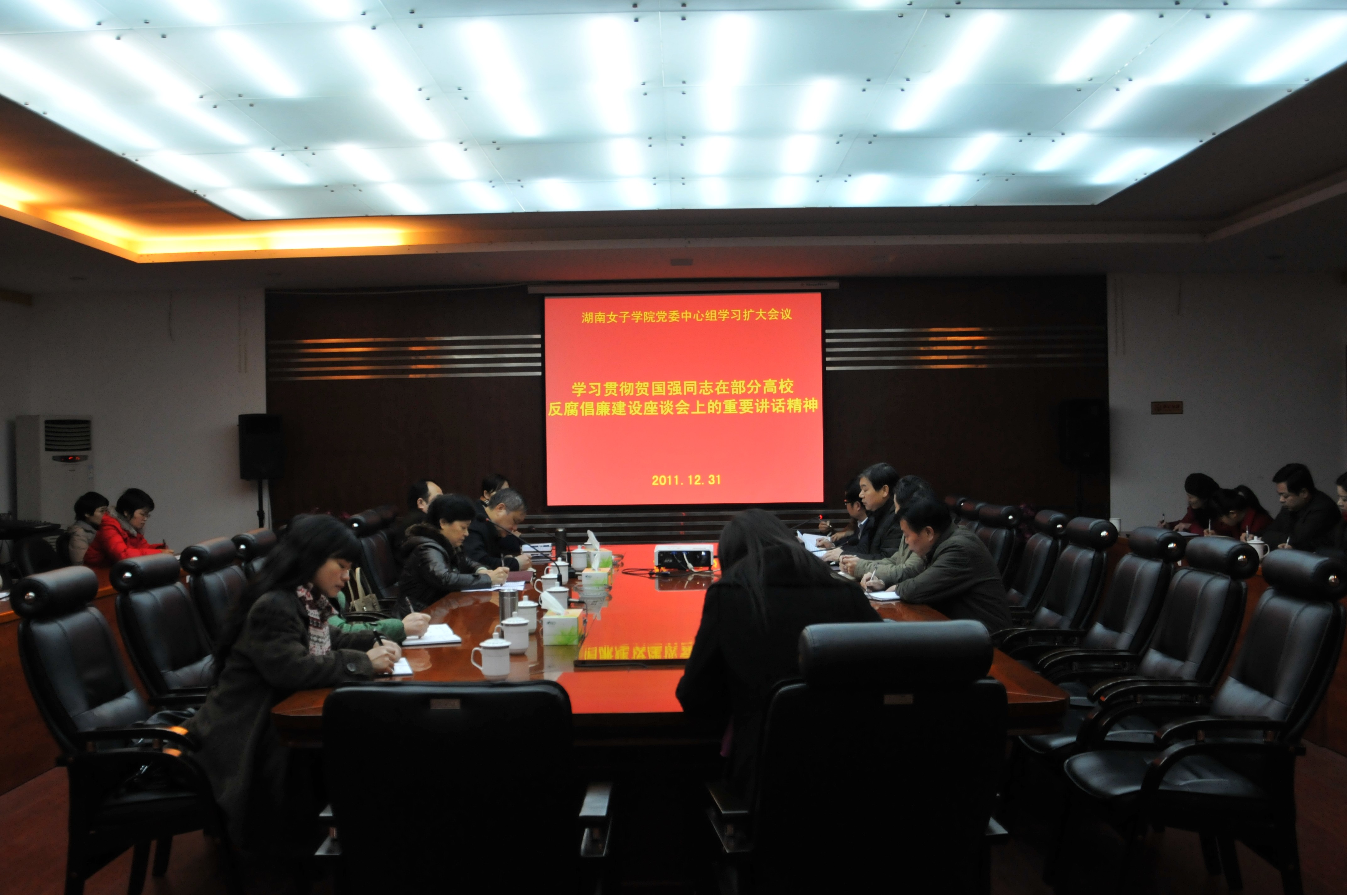 12月31日,校党委书记易银珍主持召开党委中心组(扩大)学习会,就深入推进高校反腐倡廉建设进行专题学习。校党委中心组成员、各单位负责人、各党总支书记参加了学习。