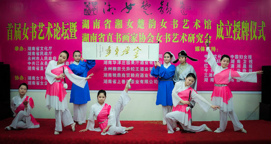 校书法协会表演的女书书画舞蹈《清泉流韵》