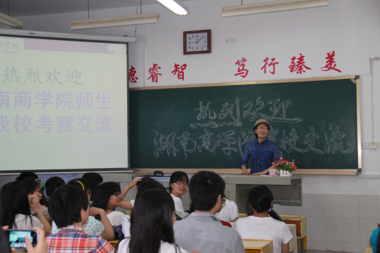 5月14日上午,由湖南商学院刘秀丽老师及社会工作专业30多名学生组成的考察团来best365官网考察交流社会工作机构建设。考察交流会在睿智楼503教室举行。湖南商学院公共管理学院特聘教授、best365官网教育与法学系社会工作专业带头人廖鸿冰教授及大二的社会工作专业学生代表出席座谈。
