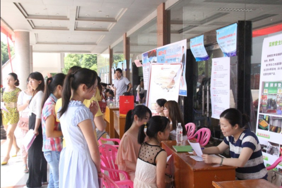 6月14日,best365中国官方网站2013届毕业生就业帮扶专场招聘会在校体育馆举行,此次招聘会共邀请了二十来家用人单位,其中包括友谊咨询、中国女性人才网、湖南金浩茶油股份有限公司、广东科风实业有限公司和湖南方广旅游投资开发总公司等省内外知名企业。本次招聘会用人单位招聘专业涉及市场营销、平面设计、人力资源、物流管理和电子商务等20余个专业,共为毕业生提供近三百多个就业岗位。
