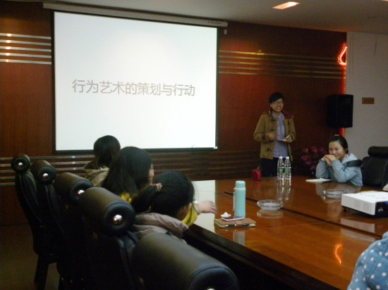 下午,两位老师主要讲解了青年参与性别平等社会实践的SWOT分析以及社会倡导活动安全与风险评估机制,然后进行了行为艺术的相关培训。在一系列培训后,六十多位同学分成六个组,同学们根据自己的选题进行了行为艺术的策划和筹备。五十分钟过后,开始展示各个组的行为艺术,最后选出了反对性别暴力的行为艺术作为次日行为艺术的实践。当天晚上,两位老师和该组同学对次日的行为艺术实践进行了精心排练。