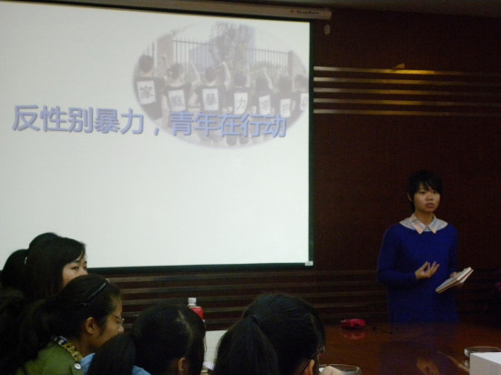 此次培训主要由性别平等网的梁晓雯老师和曾家祺老师负责。在上午培训课上,梁老师和曾老师用图文并茂的方式从公民社会参与的角度介绍青年女性如何参与公民社会,从青年女性就业、男女厕位比例平等、受教育权平等、反亲密关系暴力四个方面,讲述了青年女性面临的具体问题以及性别平等网从事这些活动的经验分享。随后,参加培训的六十多位同学分成十个小组,首先讲出自己成长经历中的性别故事,然后各个小组选出一个故事以情景剧的方式展示出来。