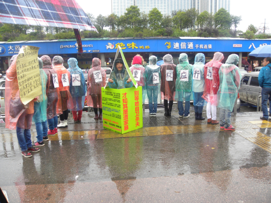 在第二天的培训课上,梁老师和曾老师指导同学们在红星会展中心广场展示了“城市女青年孤身独立盖房子”的行为艺术,获得许多观众的支持。