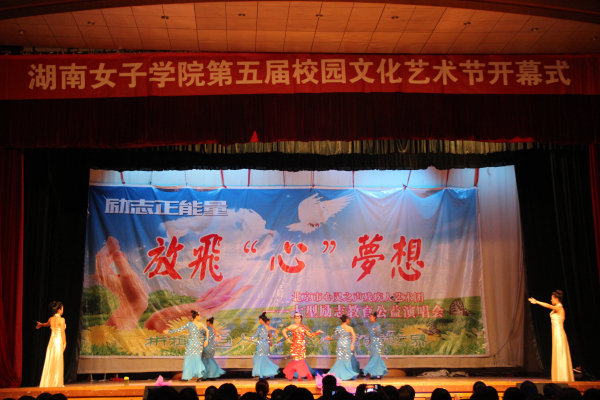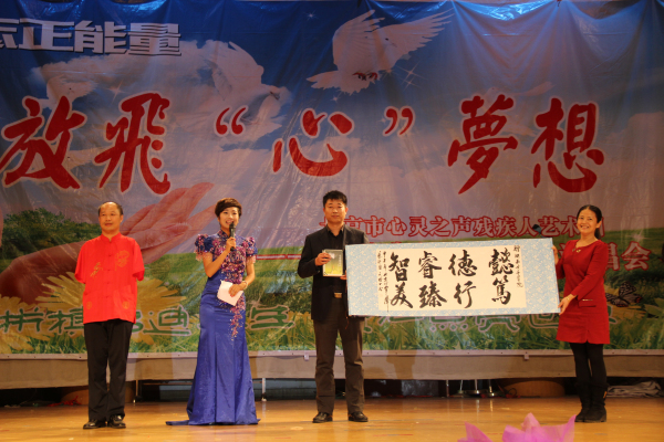 开幕式上,校团委副书记黄泽军致开幕词并宣布艺术节开幕,随后,“励志正能量•放飞梦想”大型励志文艺晚会拉开了本届科技文化艺术节的帷幕。北京市心灵之声残疾人艺术团的残疾演员倾情演出,用真挚的生命情感织就了一个个精美的节目,赞颂了一首首生命之歌。其中由肢残演员带来的《鹰之翼》让我们感受到了生命的重量;由袖珍演员带来的《小苹果》让我们感受到了乐观的力量;由聋人舞蹈队带来的压轴演出《千手观音》更是让我们的心灵为之震撼!