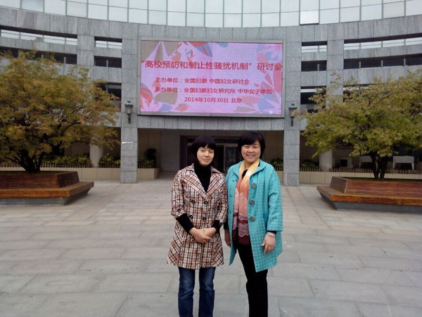 本网讯(妇女/性别研究与女性教育中心 刘人锋) 2014年10月30日下午,全国妇联和中国妇女研究会联合共建妇女/性别研究与培训基地的全国22所高校在中华女子学院举办“高校预防和制止性骚扰机制研讨会”,并就高校预防和制止性骚扰提出八项具体建议。全国妇联书记处书记、中国妇女研究会秘书长谭琳、教育部教师工作司司长许涛、全国妇联权益部部长高莎薇和22所高校的领导和代表共50余人参加会议。best365官网副校长贺江平、妇女/性别研究与女性教育中心主任刘人锋应邀参加。会议由全国妇联妇女研究所和中华女子学院共同承办,中华女子学院院长、中国妇女研究会副秘书长刘利群主持会议。