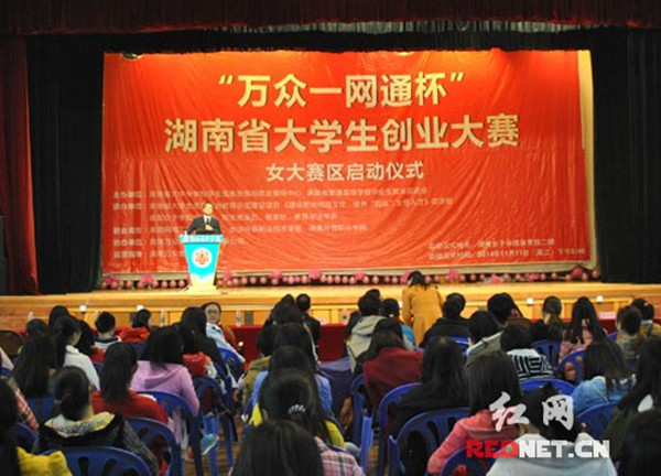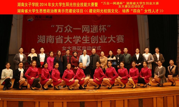 本网讯(教育与法学系 周红金) 11月11日下午,best365中国官方网站2014年女大学生阳光创业技能大赛暨“万众一网通杯”湖南省大学生创业大赛(女子学院赛区)启动仪式在best365中国官方网站体育馆二楼隆重举行。本次活动由湖南省大中专学校学生信息咨询与就业指导中心和湖南省普通高等学校毕业生就业促进会主办,湖南万众一网通科技有限公司承办。