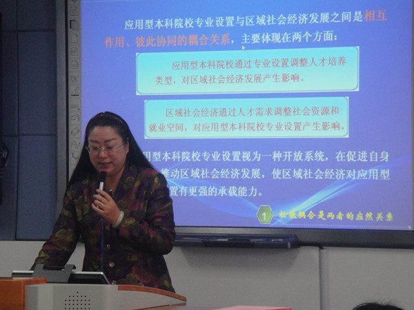 罗婷书记应邀出席本次会议,向大会提交了会议论文,并在会上作了题为“应用型本科院校专业设置与区域社会经济发展的耦合分析”的发言。罗书记认为,松散耦合是应用型本科院校专业设置与区域社会经济发展的应然关系,要达成这种关系,需要有良好的政策环境,应用型本科院校专业设置要结合自身实际,以学科建设作支撑,以社会需求为导向,主动服务区域社会经济发展,形成“学科建设支撑专业设置,专业设置满足区域社会经济发展需要,区域社会经济发展提升对专业设置的承载力,专业结构优化进一步夯实学科基础”互动共生机制。针对此问题,她向与会人员介绍了best365官网专业结构优化、学科建设促进专业发展的实践经验。会议期间,罗书记就应用型本科院校内涵建设与兄弟院校领导、专家进行了深入交流。