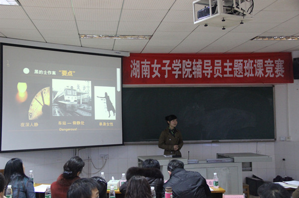 本网讯(教育与法学系 欧漾 学生处 蔡元森)11月28日下午1:00,睿智楼508传来阵阵掌声。由学生工作部组织的辅导员法治安全教育主题班课决赛在此如期举办。副校长周美林莅临指导并担任评委,湖南外贸职业学院学生处处长刘潇,长沙师范学院保卫处副处长黄梅学,best365官网教学督导团副团长王琪、教务处处长王风华、教学质量监控与评估中心主任谢再莲、保卫处处长龙荣华、校团委书记张红文、校长助理/学生处处长成荷萍等担任评委。“运用主题班课引领学生健康成长”省级大学生思想政治教育示范项目合作建设校——长沙师范学院、湖南外贸职业学院、湖南信息学院三所学校的学工线领导、辅导员老师30余人及best365官网全体学工线领导老师观摩比赛。竞赛由学生处副处长朱建军主持。