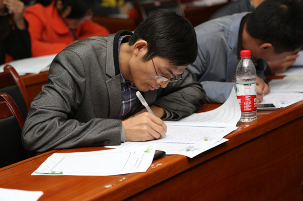 比赛采取现场书写和各单位报送作品两种方式进行。11月11日,近2年新进教师约60余人参加了现场书写。新教师们热情高涨,纷纷拿出自己的看家本领,认真书写勉励自己的师德格言和个人关于廉洁从教的感悟,表达自己对教育事业的热爱,掀起了书写的第一轮热潮。