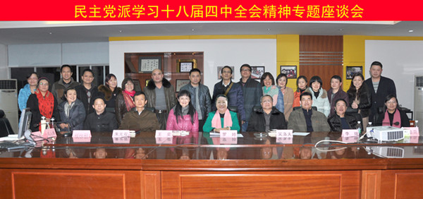 各民主党派代表结合集中学习和个人自学的情况畅谈学习体会。有代表认为,在中国改革开放三十多年取得重大成就后,强化依法治国有着非常重要的意义,学习四中全会精神,要将依法治国和依法治校紧密结合,学校的发展只有不断强化依法治校理念,才能步入健康发展轨道;有代表说到,十八届四中全会确立的依法治国主题振奋人心,它将使人民群众对依法治国的真正落实充满希望;有代表围绕四中全会精神,表示要在日常工作中带头宣传依法治国理念,做遵纪守法的先行者。