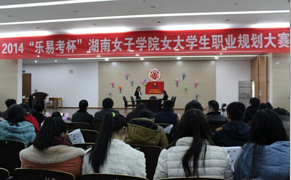 本网讯(教育与法学系 周红金)12月19日晚,由招生就业处和教育与法学系主办,大学生职业发展协会承办,乐易考(湖南)教育科技有限公司冠名的2014“乐易考杯”best365中国官方网站大学生职业规划大赛总决赛在校大学生活动中心顺利落下帷幕。经过职业规划书初选和复赛答辩,共有6名优秀选手最终入围总决赛。大赛特别邀请了乐易考(湖南)教育科技有限公司董事长田亚东、总经理安光吉、美尚机构董事长谢永祥、长沙盛世集团董事长张宏伟、湖南科技职院就业办刘安华、湖南网络工程职院全球职业规划师蔡离离、长沙民政职院吴文平、校教育与法学系党总支书记伍秋林、招生就业处处长助理杨平和就业创业指导教研室主任屈振辉等担任评委,来自中南大学、长沙理工大学和本校的社团代表近300人观看了此次比赛。