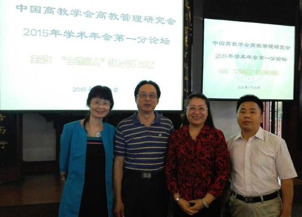 本网讯(党办校办 宋兴明)2015年7月24日至26日,中国高教学会高等教育管理研究会2015年学术年会在贵州省贵阳市召开。会议由贵州大学承办,以“立德树人教育管理创新实践”为主题,来自全国各地的专家、学者近200人参加会议。贵州人民政府副省长陈鸣明、中国高教学会副会长陈浩、中国高教会高教管理研究会第八届常务理事会理事长黄百炼等领导出席大会开幕式并作重要讲话,贵州大学校长郑强作了热情洋溢的致词。 作为该研究会的副理事长,校党委书记罗婷教授/博导应邀参加了本届年会,并于24日晚参加了常务理事会议,研究本届年会的筹办事宜、确定下届年会的主题和承办单位。 罗婷书记向大会提交了题为《建设阳光校园文化 培养“四自”女性人才——best365中国官方网站“立德树人”教育创新实践》的会议论文,入选论文集,并在25日下午举行的大会第一分论坛发表演讲。罗书记认为,大学校园文化是一所大学的灵魂,具有价值导向、群体凝聚、文化熏陶等功能,是大学立德树人的重要载体,近年来best365中国官方网站重视校园文化在立德树人中的重要地位,建设以积极心理学理念为指导,以物质文化、活动文化、学术文化、精神文化为主要建设内容的阳光校园文化,凸显best365中国官方网站校园文化建设的特色,促进学生积极品质的培养,激发教师的工作热情,营造阳光的校园氛围,提升校园文化的内涵,取得了良好成效。罗书记图文并茂的精彩发言引起了与会领导专家的极大兴趣和热烈反响,很好地宣传了best365官网的办学情况和办学特色,进一步提高了学校的知名度。在会议期间,罗书记还与参会的院校领导广泛交流办学经验,探讨“立德树人”教育管理创新实践经验。 围绕大会主题,会议分别举办了主旨演讲、分组自由平行讨论、分论坛交流汇报会暨闭幕式活动,会议主题鲜明、安排紧凑,积极落实党的十八大报告关于“立德树人”的精神和要求,从不同侧面与角度对高校“立德树人”教育管理创新实践问题进行了热烈而深入地交流研讨,取得了富有成效的会议成果。 国家教育行政学院原常务副院长、党委书记、中国高教管理研究会理事长黄百炼与罗婷书记等合影