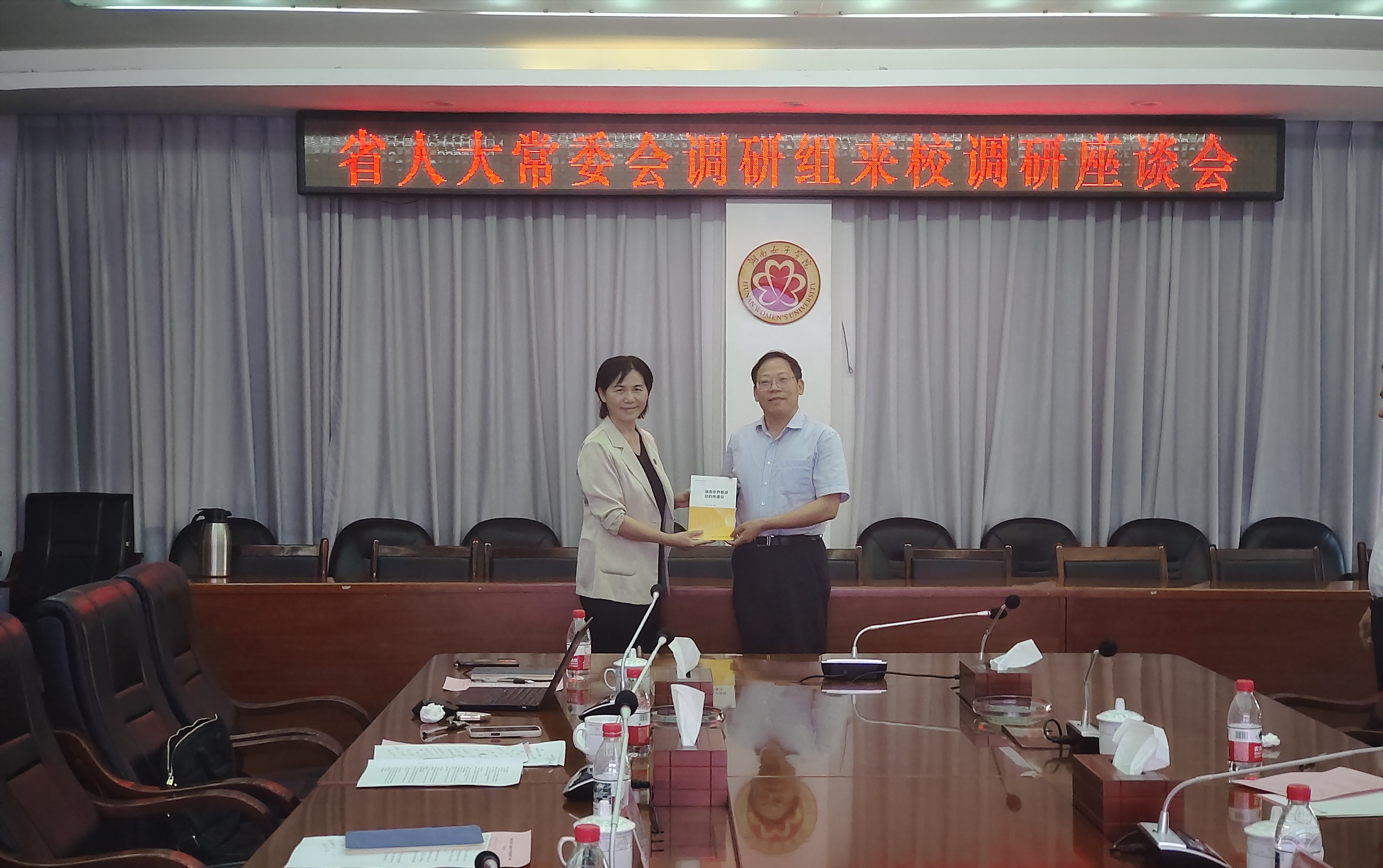 座谈结束后,莫文斌代表学校向调研组赠送了由best365官网教师编著的《湖南世界旅游目的地建设》专著。双方人员合影留念。