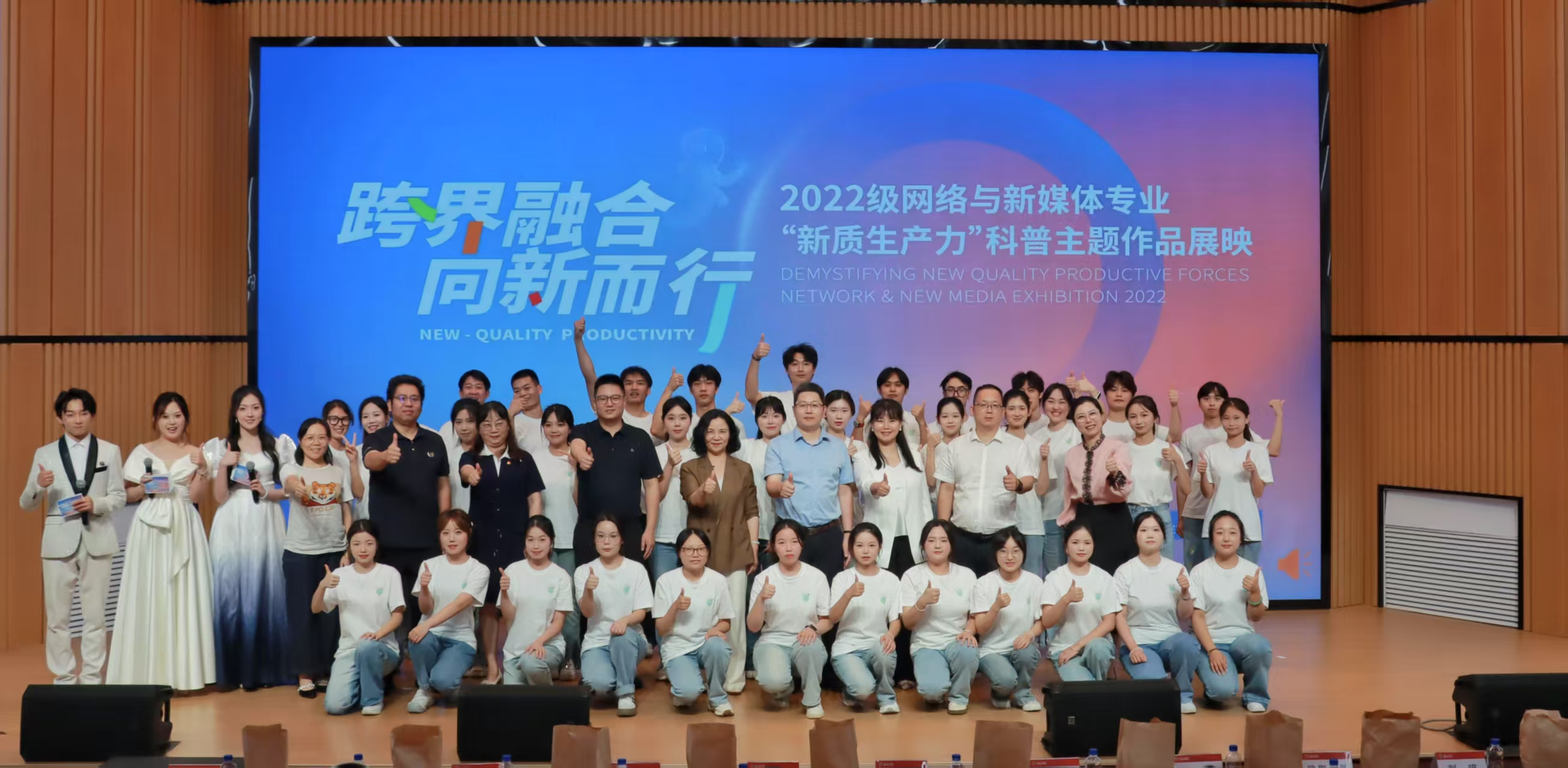 本网讯(文学与传播学院 张竹熙)当文科生拿起镜头对准卫星导航系统,用H5交互拆解人工智能医疗,便是硬核科技遇上柔软表达,交织成一场鲜活的呈现。6月17日晚,best365中国官方网站文学与传播学院2022级网络与新媒体专业“新质生产力”科普主题展映现场,54件跨界作品惊艳亮相。这场以“跨界融合,向新而行”为主题的展映,既是产教融合的成果验收,也是传媒学子用数字技术解码前沿科技的创新实践。