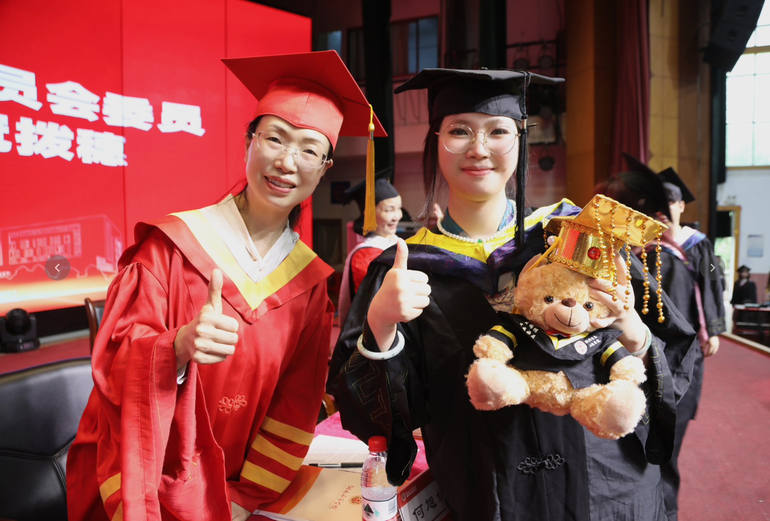 随后,何旭娟为省级优秀毕业生代表授予学士学位证书、正冠拨穗,全体校领导和学位委员会委员分别为毕业生正冠拨穗。