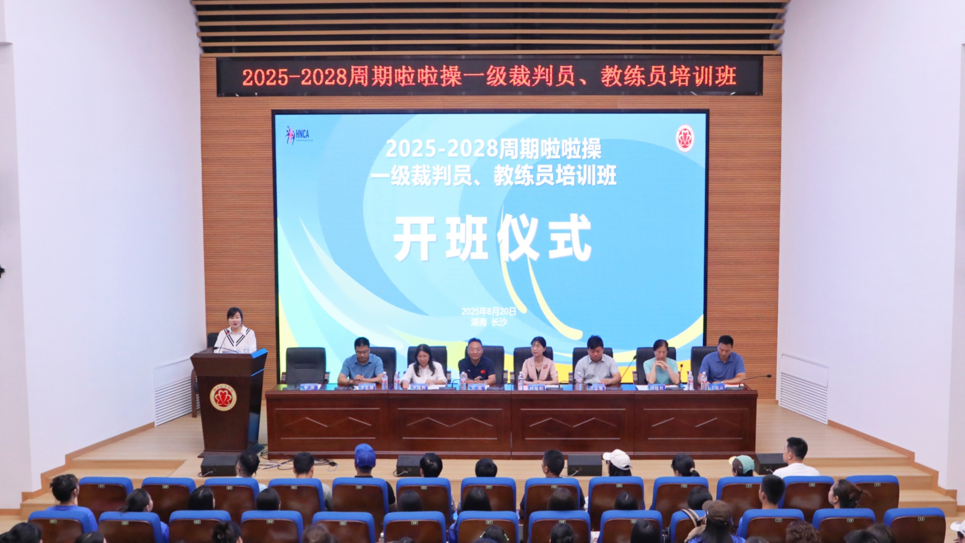 本网讯(体育部 刘泽锋 唐悦悦)传承团队奉献精神,凝练卓越体育品质。2025年6月20日上午,2025-2028 周期全国啦啦操一级教练员、裁判员培训班暨湖南省啦啦操发展研讨会在best365中国官方网站会议报告厅举行。校党委副书记、校长何旭娟,湖南省体育局二级巡视员、省体育总会专职副主席王晃,校党委委员、副校长李凯辉,湖南省教育厅体卫艺处三级主任科员张志敏,湖南省啦啦操运动协会领导,来自湖南、广东、上海、湖北等地的160余名啦啦操领域精英与骨干学员及best365官网体育部部分师生出席开班仪式。仪式由湖南省啦啦操运动协会秘书长李萍教授主持。