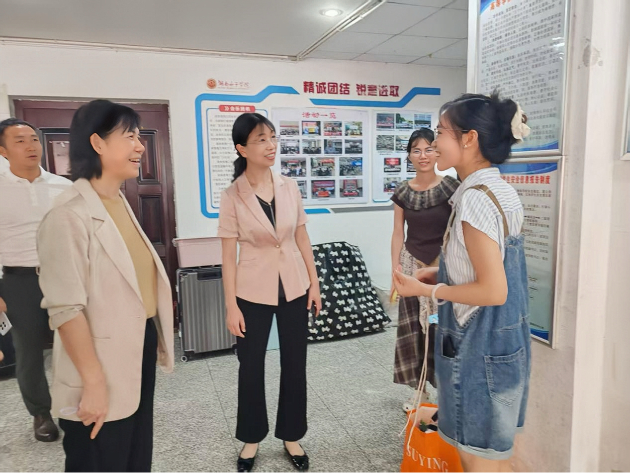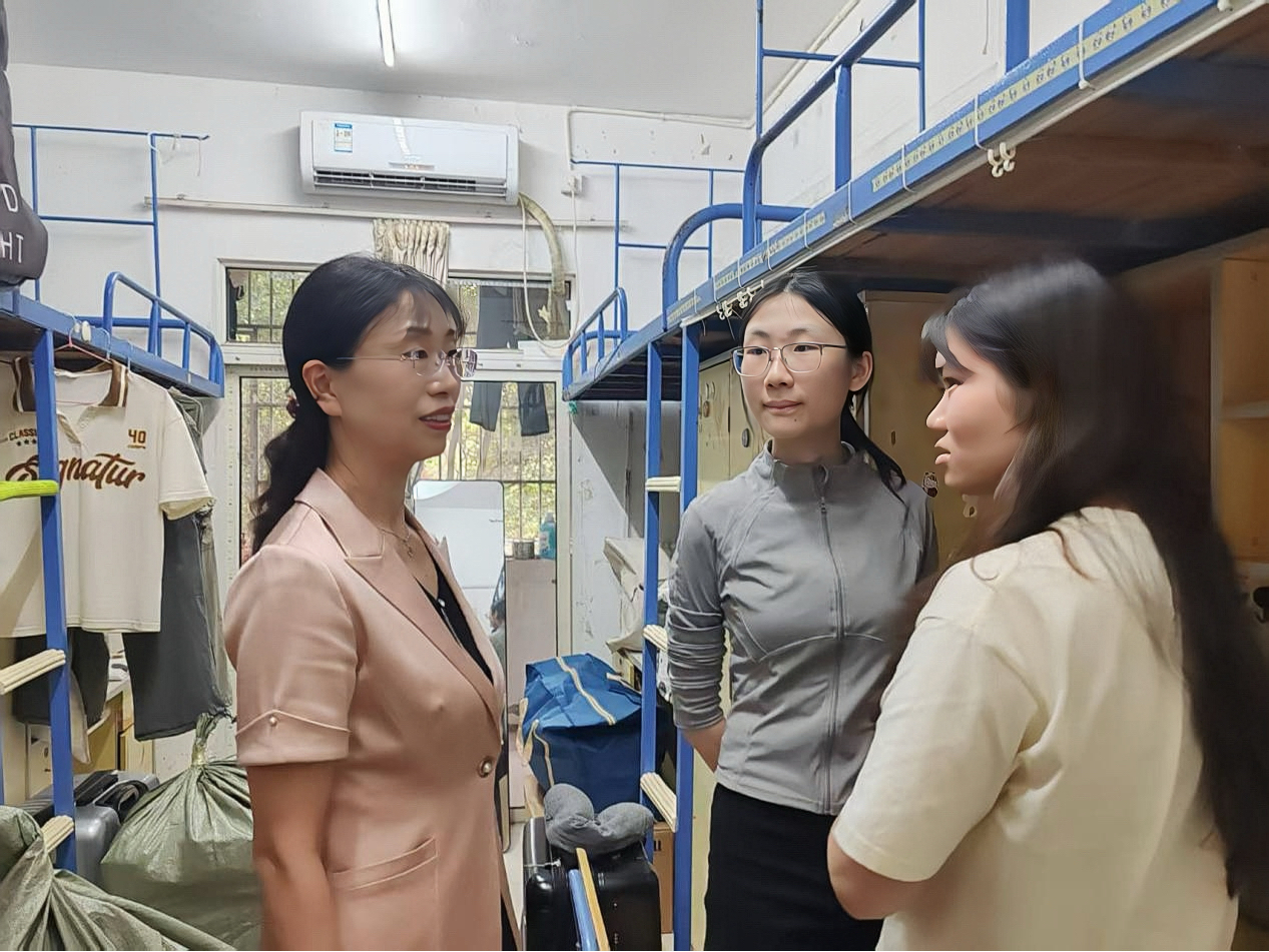 “和哪家单位签了就业协议?”“还有什么困难需要帮助?”“对学校的教育教学有没有什么建议?”走访过程中,领导们在学生宿舍与毕业生们亲切交谈,关切询问大家的离校行程、毕业去向,话语间满是牵挂与期许。何旭娟鼓励毕业生们以昂扬姿态直面人生挑战,勇做新时代有担当的奋斗者,将个人理想融入国家发展大局。2021级臻美班毕业生陈晓萍满怀感激地说:“在母校的四年,我收获的不仅是知识,更是成长的力量。即将成为一名中学教师,我定会传承女院精神,在教书育人岗位上发光发热,为国家和社会贡献自己的一份力量。”