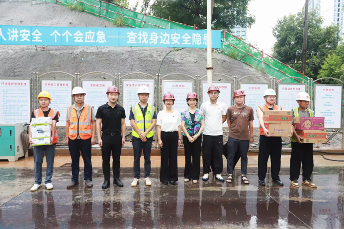 在北院养老托幼实训大楼工地,段美娟询问工程进度后为工人送上慰问品,反复叮嘱“注意防暑,确保安全健康”,工人们深受触动,承诺将保质保量完成任务。