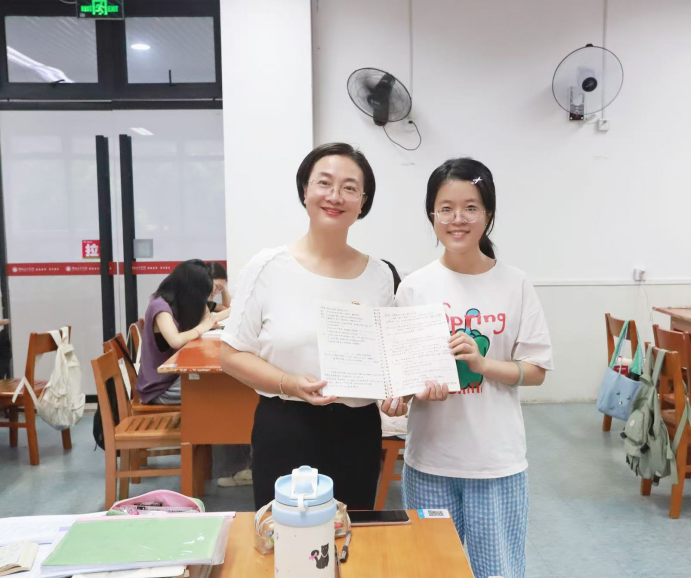 图书馆内,慰问组先向工作人员致谢,再走进阅览室看望考研学子。段美娟翻阅复习资料时,为工整笔记点赞,鼓励大家择校“既脚踏实地,也敢于突破”,让学子们备考决心更坚。