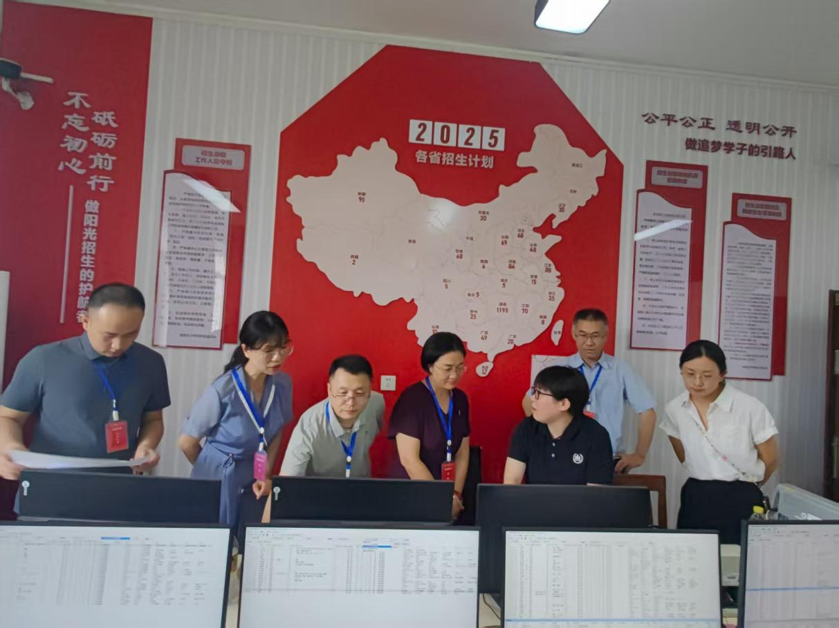 学校党委和行政高度重视招生工作,校领导多次深入一线调研指导,为录取工作顺利开展提供坚强保障。校党委书记段美娟在视察录取现场时强调:“招生工作是学校人才培养的起点,关系到学校的长远发展和社会声誉,必须坚持公平公正、规范有序,确保每一位考生的权益得到尊重。”她指出,要以高度的责任感和使命感做好招生各环节工作,切实把好人才入口关,为学校高质量发展奠定坚实基础。党委副书记、校长何旭娟亲临录取核心现场督导工作,她表示:“招生录取工作是人才培养的关键环节,要依托录取数据分析生源结构,扎实推进后续服务。她要求招生和培养要联动,各二级学院要有针对性地抓好专业认知教育,增强学生专业学习的内生动力,帮助学生尽快适应大学的学习生活。党委委员、副校长莫文斌深入通知书封装现场,逐项检查流程细节,确保发放工作精准无误。她强调:“录取通知书是学校与新生的‘第一封信’,承载着学校的形象与温度,必须做到精准无误、规范有序,让每一位新生感受到学校的用心与关怀。”