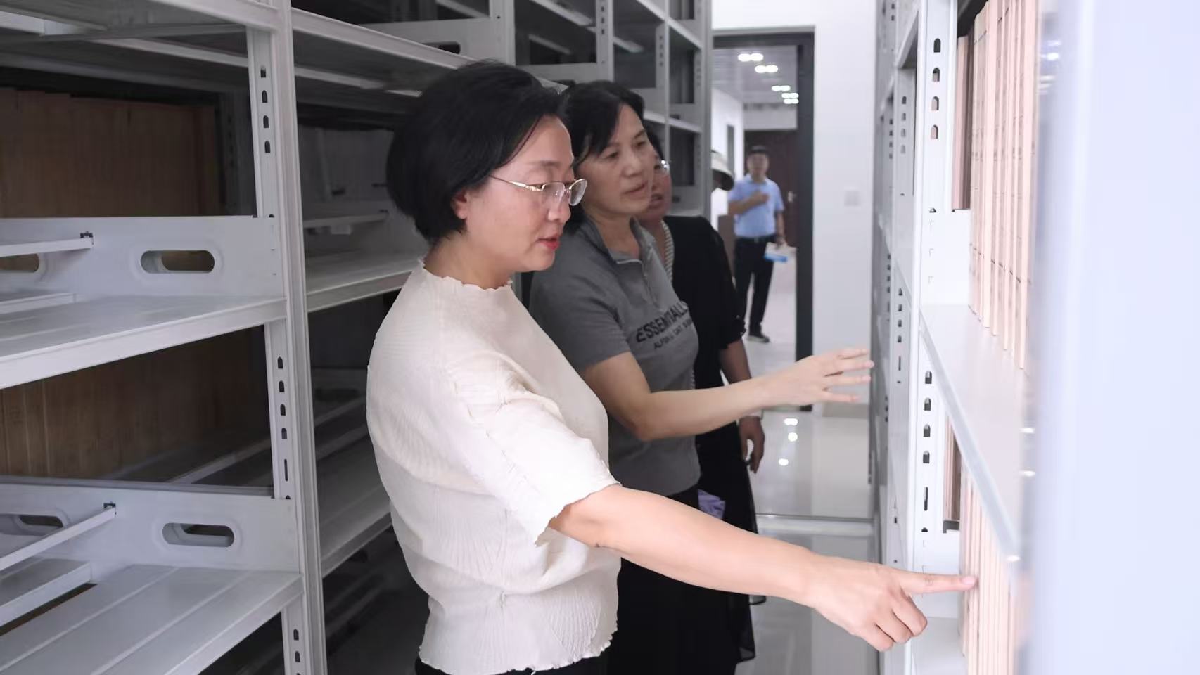 段美娟一行实地查看了档案室的整体环境布局、功能区域划分、档案库房、办公区域、阅档区及整理区等,详细询问了档案室建设过程、密集架等设施设备运行情况、安全保密措施以及未来建设计划,亲切慰问档案室工作人员。她指出,档案是学校宝贵的文化财富和历史资源,对于存史资政育人、服务学校事业发展具有不可替代的重要价值,新档案室建设是学校改善档案管理条件、提升档案管理水平的重要举措,档案室要以此为新起点,进一步加强规范化、科学化管理,持续提升服务效能,积极推进档案信息化、数字化建设,确保档案安全,更好地为广大师生校友提供高效、便捷、精准的服务,更好地发挥档案存史、资政、育人的功能,为学校高质量发展贡献档案力量。
