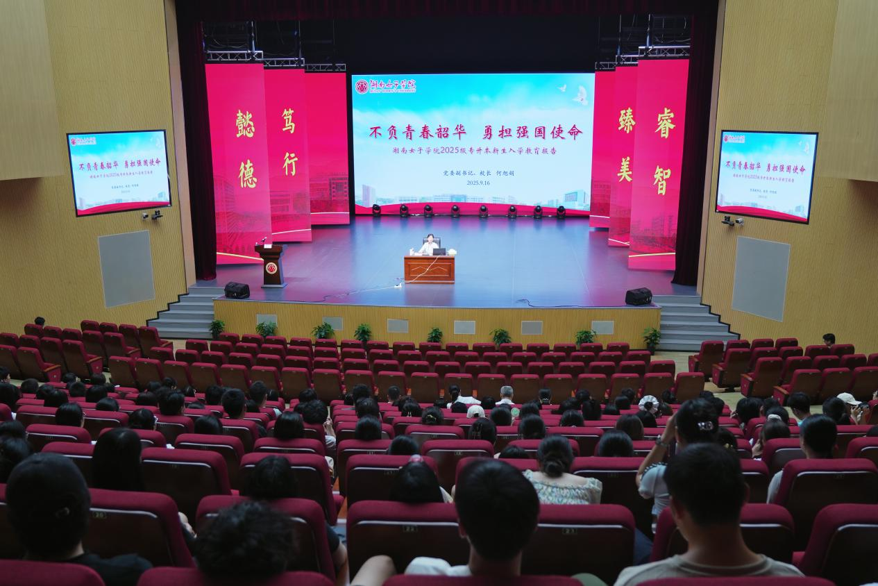 本网讯(学工部 雷纤纤 王雨欣)9月16日下午,best365官网在求实楼剧场举行2025级专升本新生入学教育报告会。校长何旭娟教授作题为《不负青春韶华,勇担强国使命》的专题报告,为300多名专升本新生带来一场深刻而充满激情的“开学第一课”。报告会由副校长周艳红教授主持,各二级学院党委(党总支)副书记、全体专升本班级辅导员参会。