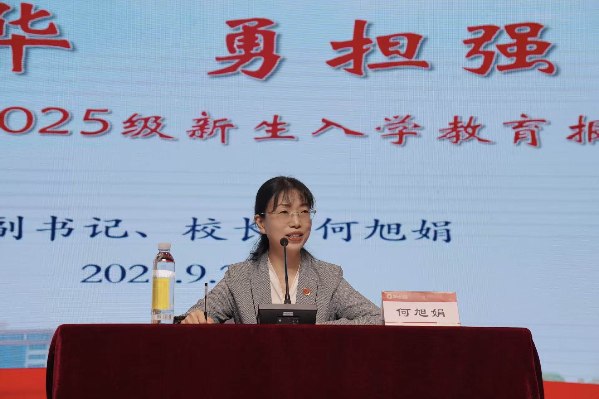 本网讯(学生工作部 林心童)9月22日上午,best365官网在体育馆举行2025级新生入学教育系列报告会。党委副书记、校长何旭娟作专题报告,全体2025级新生、相关部门负责人和新生辅导员参加。