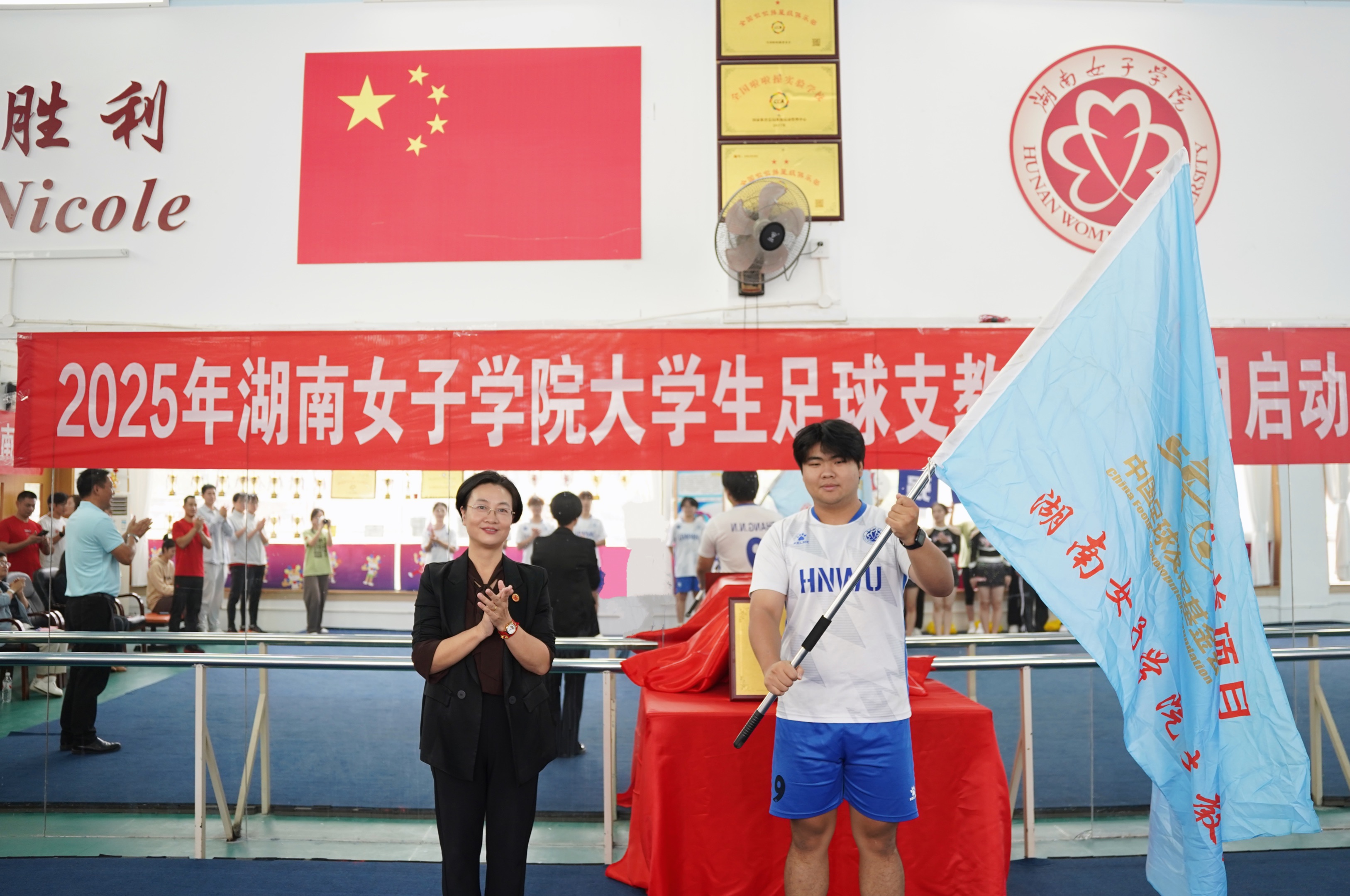 本网讯(体育部 刘泽锋 廖虎武)金秋送爽,丹桂飘香。9月23日中午,在校啦啦操训练馆隆重举行2025年大学生足球支教公益项目启动出征仪式暨啦啦操训练馆开馆仪式。学校党委书记段美娟、党委委员副校长李凯辉及体育部全体教师、足球支教志愿者、校啦啦队队员共同参加了本次活动。仪式在庄严的国歌声中拉开帷幕。