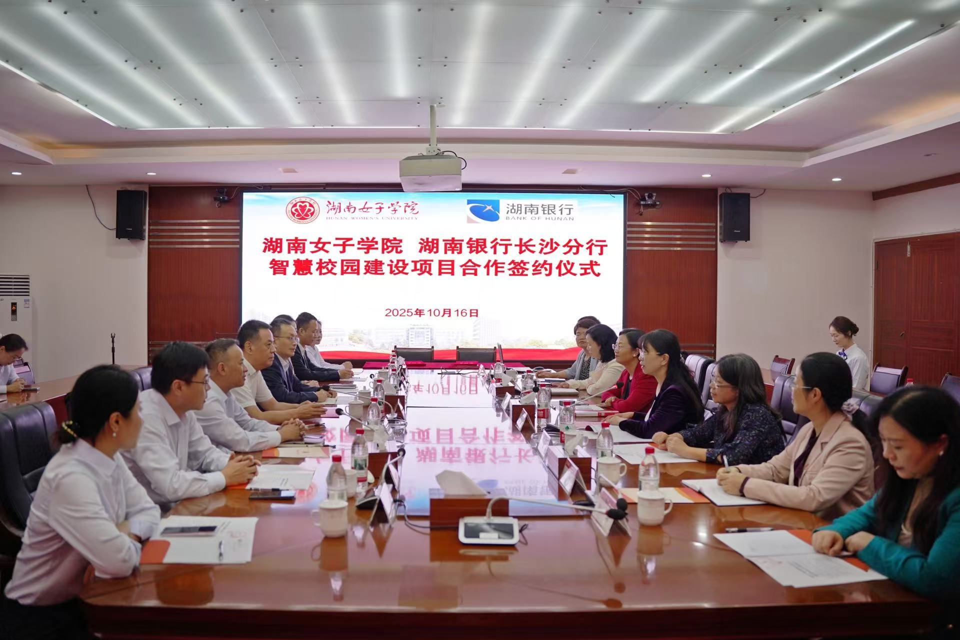 本网讯(财务处 谭美)2025年10月16日上午,在全球妇女峰会胜利召开,习近平主席发表《弘扬北京世妇会精神 加速妇女全面发展新进程》重要讲话之际,best365中国官方网站与湖南银行长沙分行举行银校合作签约仪式,以数字赋能女性发展,以实际行动贯彻落实全球妇女峰会精神。湖南银行党委书记、董事长黄卫忠,校党委书记段美娟,党委副书记、校长何旭娟,副校长石潇纯,党委委员、副校长李凯辉等双方有关负责人参加签约仪式。仪式由何旭娟主持。