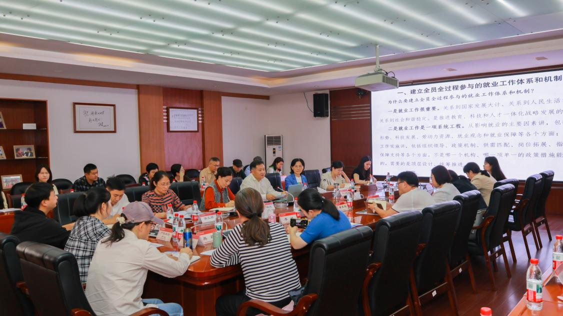 在就业工作部署环节,招生就业处处长杨平详细汇报了2026届毕业生就业工作年度安排,明确了工作目标、重点任务与时间节点,并对即将举办的“湖南省2026届普通高校女大学生秋季供需见面会”进行了具体安排。