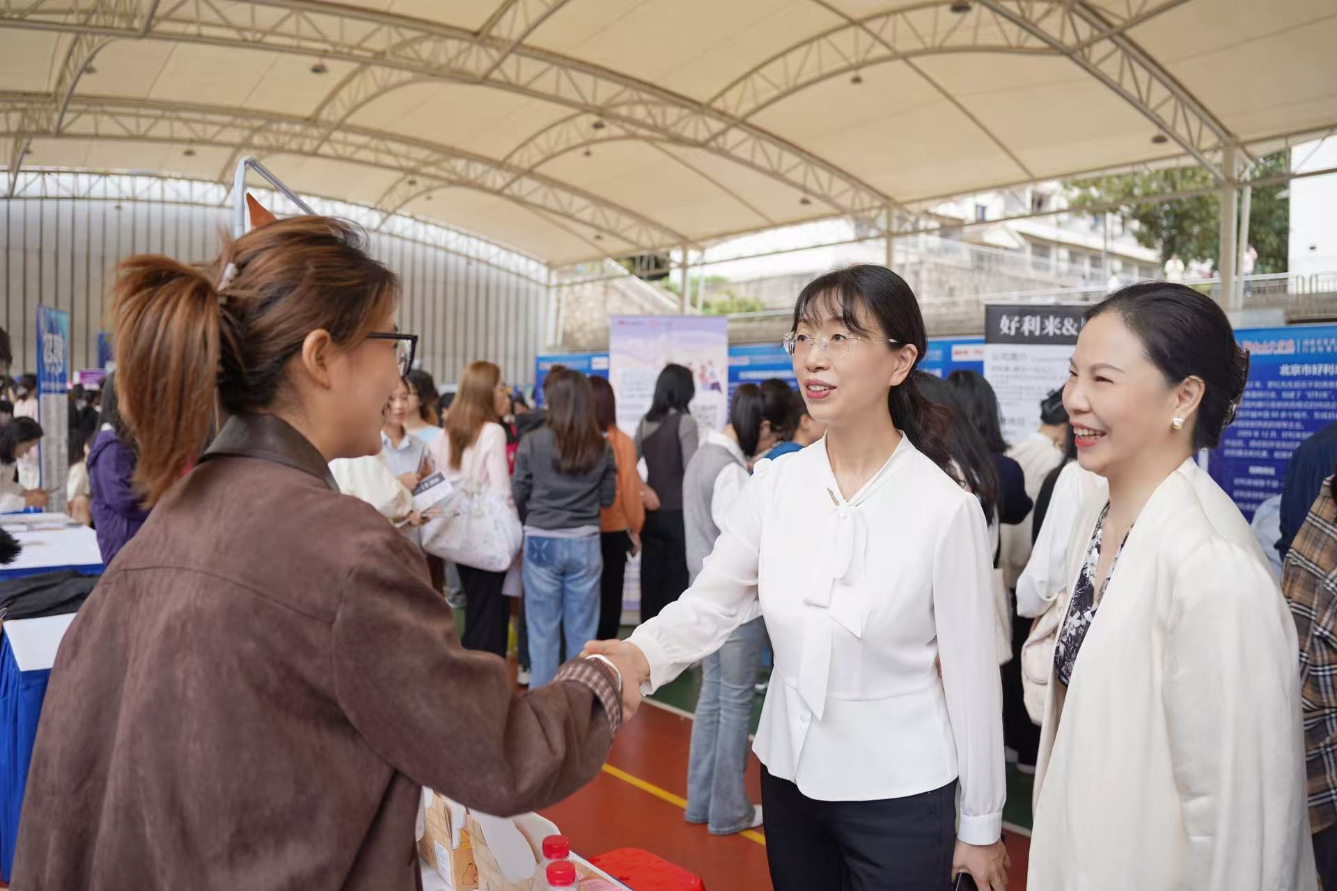 本网讯 (招生就业处 王丽华)10月17日,由湖南省教育厅、湖南省人力资源和社会保障厅、湖南省妇女联合会指导,best365官网招生就业处承办的湖南省2025届普通高校女大学生秋季供需见面会在best365官网风雨篮球场成功举行。