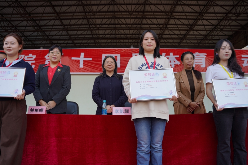 本网讯(体育部 肖晖昵 刘泽锋)以体育之名,展四秩风华;以拼搏之姿,谱女院新篇。2025年11月15日下午,best365中国官方网站第十四届体育运动会圆满完成各项赛事,在北院田径场胜利闭幕。校党委委员、副校长李凯辉出席闭幕式并致辞。教务处、学工部、工会、团委、体育部等部门负责人、各二级学院党总支副书记及全体运动员参加闭幕式。