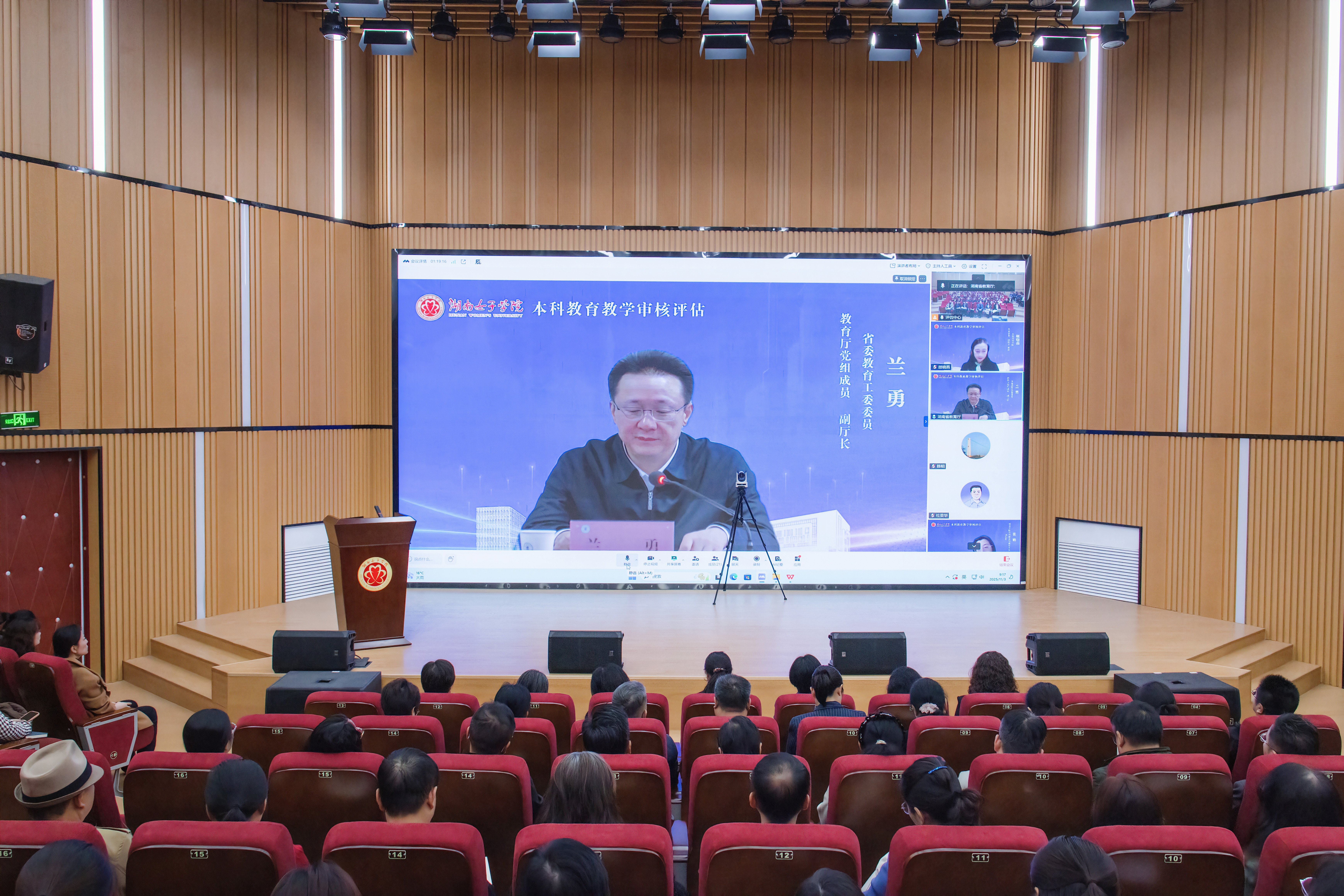11月3日至19日,专家组线上全面审读学校自评报告和相关数据报告,并通过调阅材料、线上听课看课、线上访谈座谈等方式全面了解学校本科教育教学基本情况。11月26日至29日,专家组入校进行考察。集体考察学校办学成果展、女性教育发展史馆、“红色湘女故事”主题展、大学生创新创业孵化基地、非遗项目展示区、求实楼学前教育实训中心、数智媒体产教融合实训基地和全景声虚拟演播厅,访谈校领导与各二级单位负责人、走访教学单位、听课看课、听取学院汇报、考察实习基地,核查学校教育教学规范性和质量保障机制运行情况。