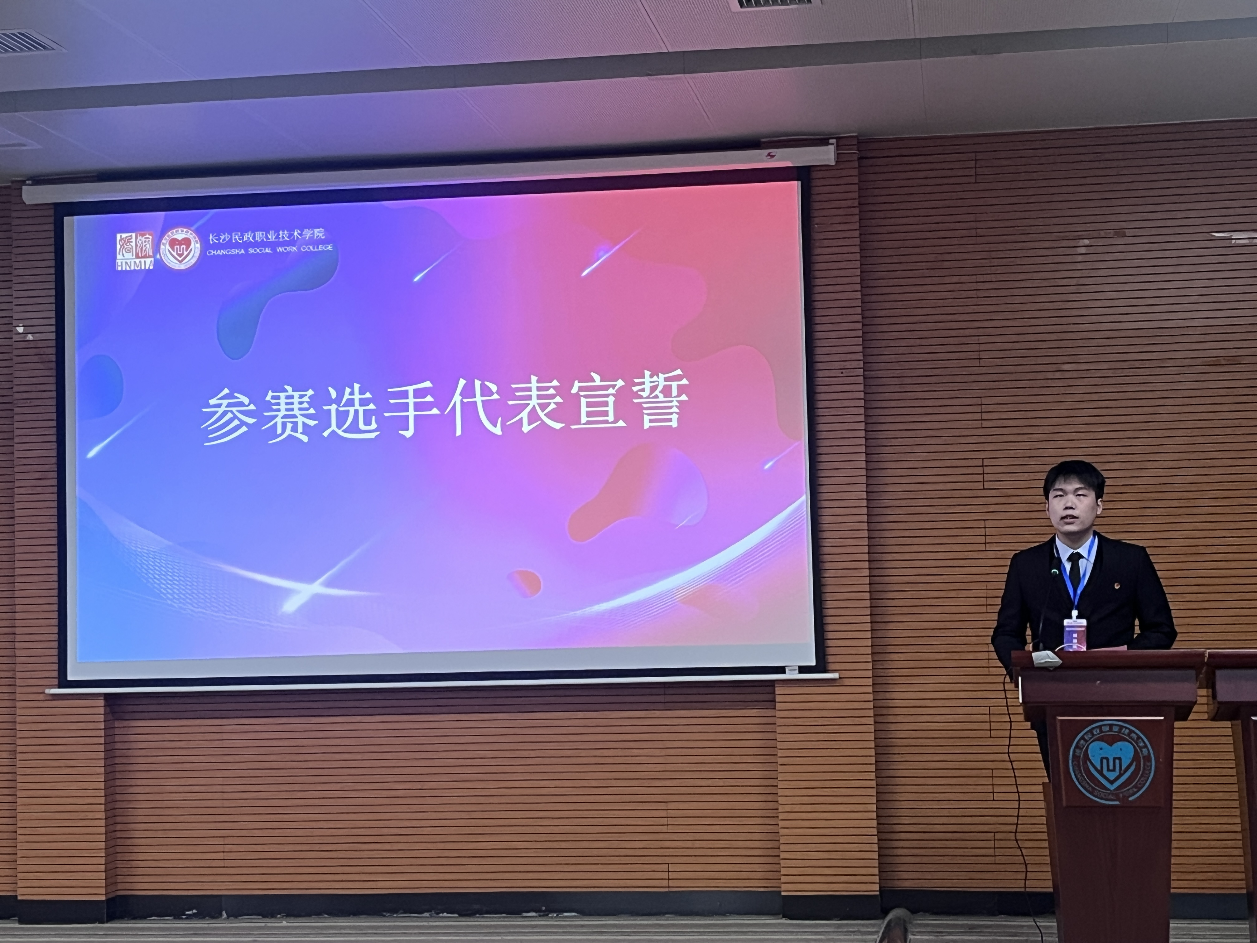 竞赛现场,高璟安同学作为参赛代表庄严宣誓,展现出best365官网学子严谨认真的参赛态度与良好精神风貌,并凭借扎实的专业功底、新颖的创意构思及出色的现场表现,在婚礼策划赛项中脱颖而出斩获一等奖。