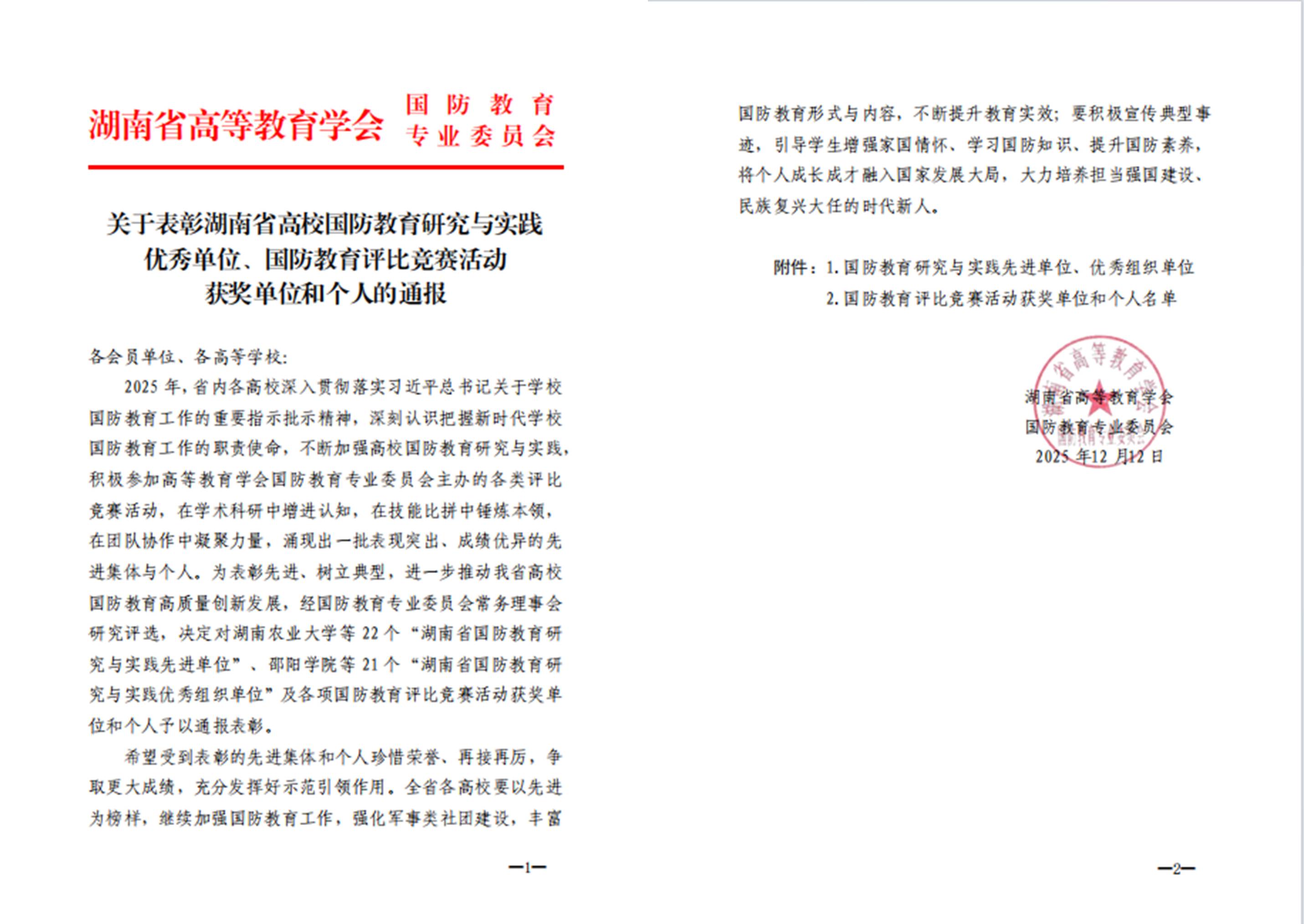 本网讯(学生工作部 陈翊 夏欣)近日,由湖南省教育厅指导的湖南省高等教育学会国防教育专业委员会2025年年会在岳阳职业技术学院圆满落幕。best365官网学生工作部(武装部)副部长张娟参会。会上传来喜讯:best365官网在系列评比中表现突出,获1项集体与2项个人省级荣誉,充分彰显了best365官网国防教育工作的扎实成效。