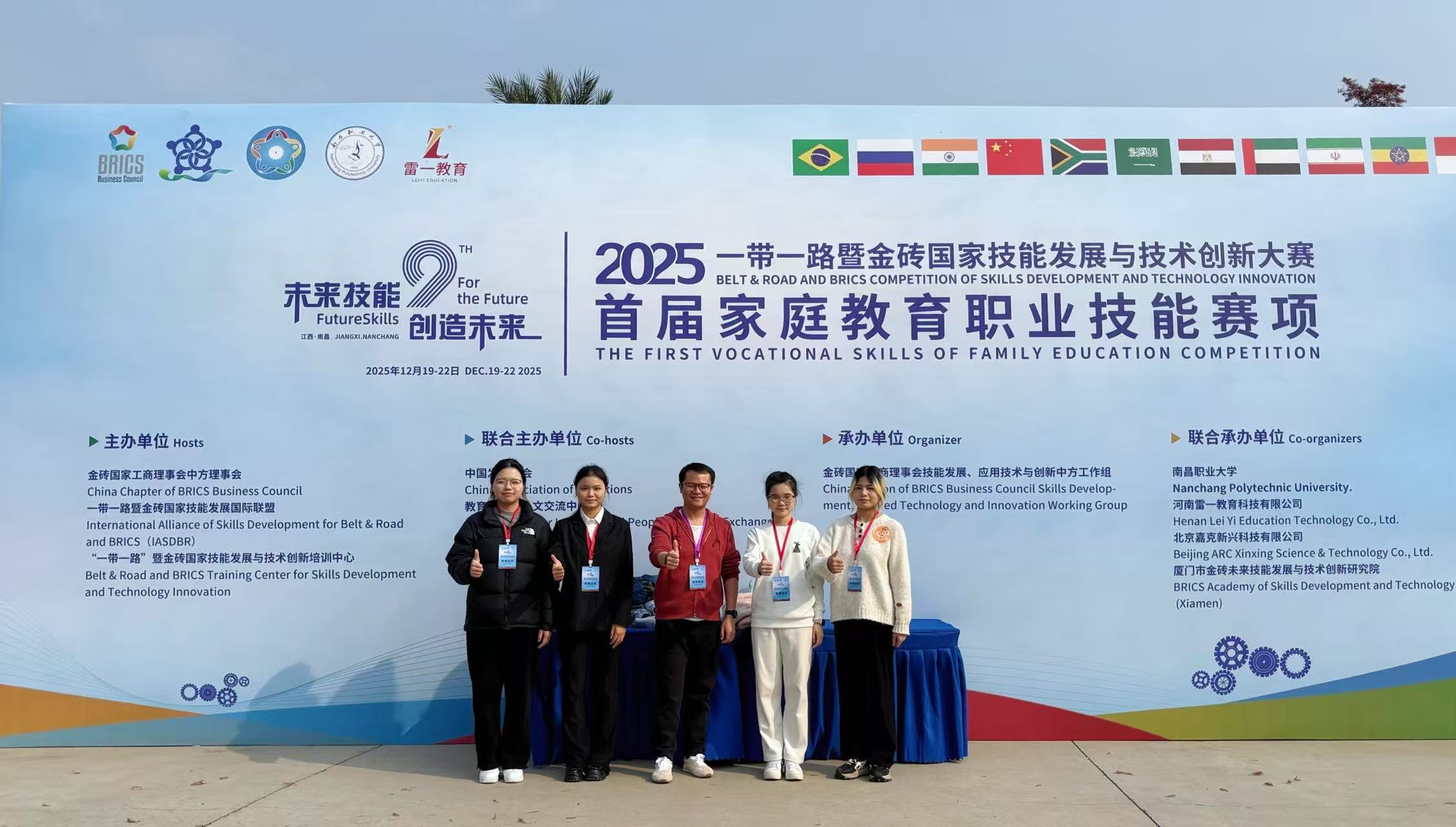 本网讯(社会发展学院 成雁瑛)近日,2025一带一路暨金砖国家技能发展与技术创新大赛——首届家庭教育职业技能赛项总决赛在南昌圆满落幕。best365中国官方网站社会发展学院参赛团队(选手:23级学前教育专业邵楠、廖桂湘、邱文洁、吴馨月;指导教师:姚云龙、成雁瑛)凭借扎实的专业功底、出色的现场表现和稳定的团队发挥,最终荣获高校组银奖,同时获得优秀指导教师奖和优秀组织奖,为学校赢得了荣誉。